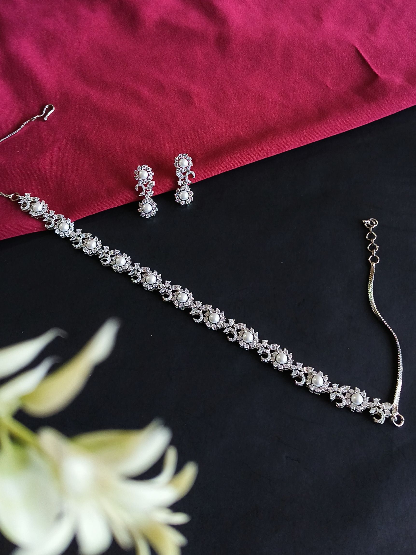 Beautifully crafted necklace made with high-quality brass, premium polish, and high-finish plating. Studded with shiny American Diamonds for a rich, elegant sparkle that enhances any festive look.