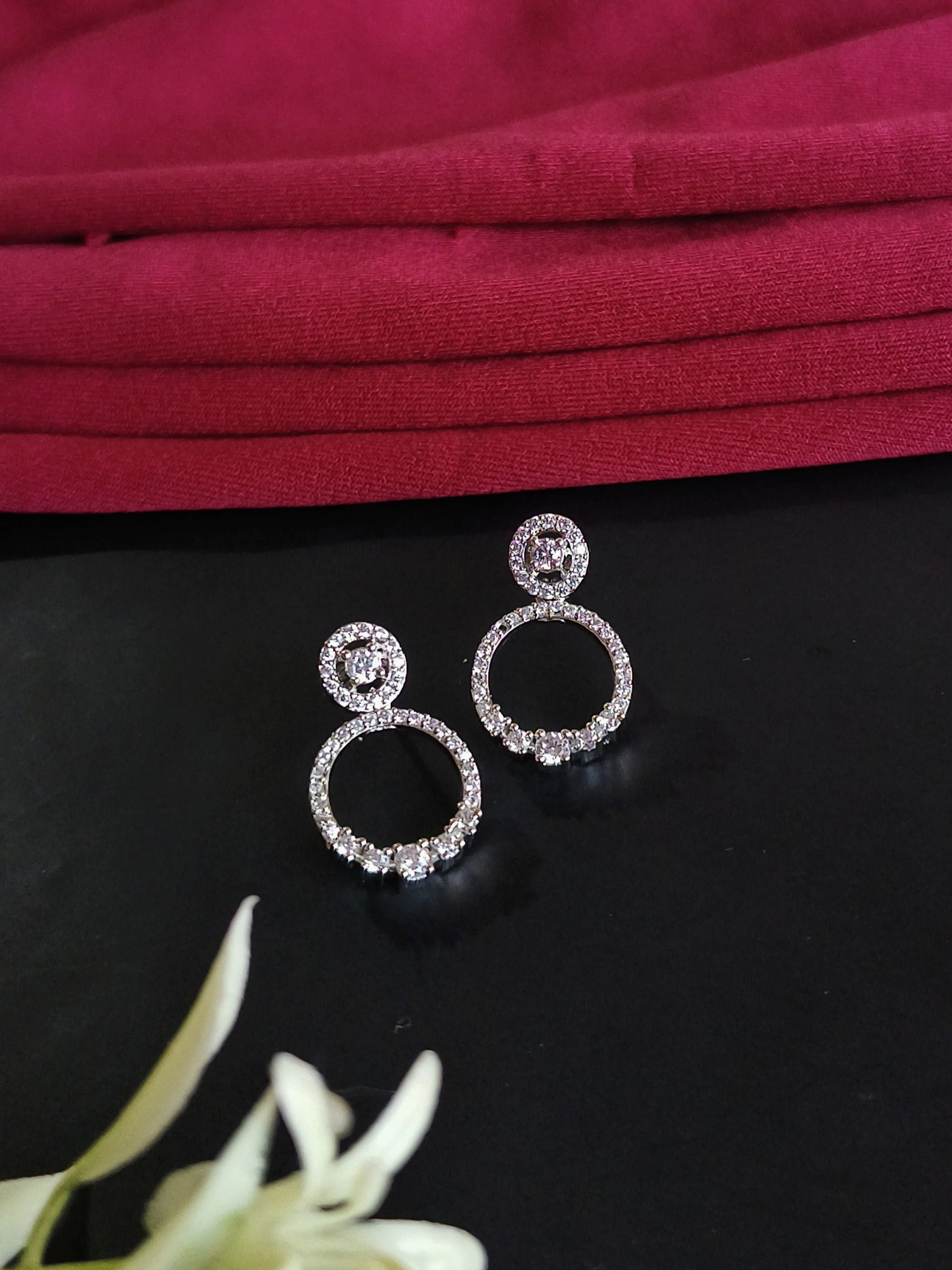 Beautifully crafted earrings made with high-quality brass, premium polish, and high-finish plating. Studded with shiny American Diamonds for an elegant sparkle and comfortable wear.