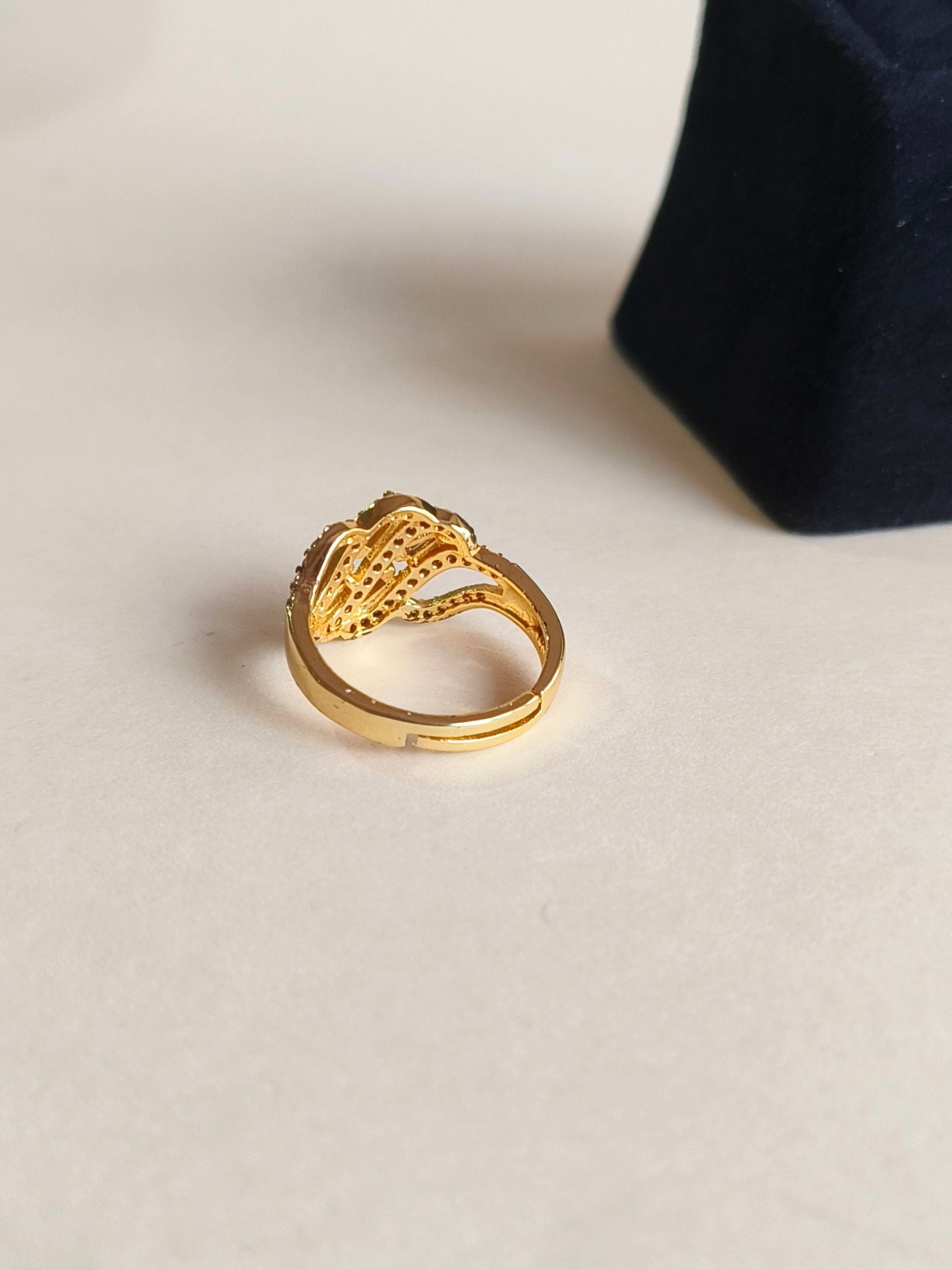 Beautifully crafted adjustable finger ring made with high-quality brass, premium polish, and high-finish plating. Studded with shiny American Diamonds for an elegant sparkle. The adjustable design comfortably fits most finger sizes.