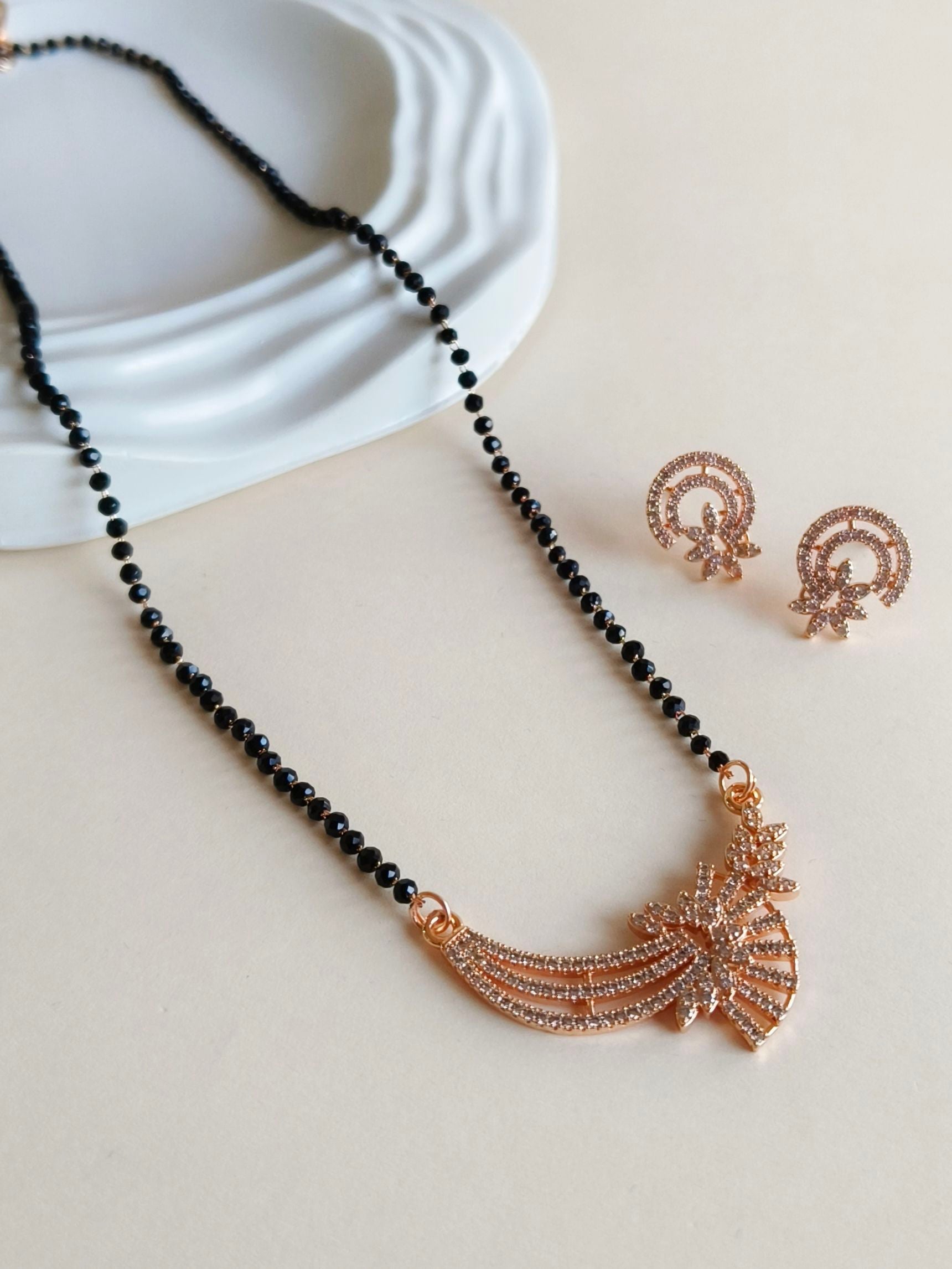 Beautifully crafted necklace made with high-quality brass, premium polish, and high-finish plating. Studded with shiny American Diamonds for a rich, elegant sparkle that enhances any festive look.