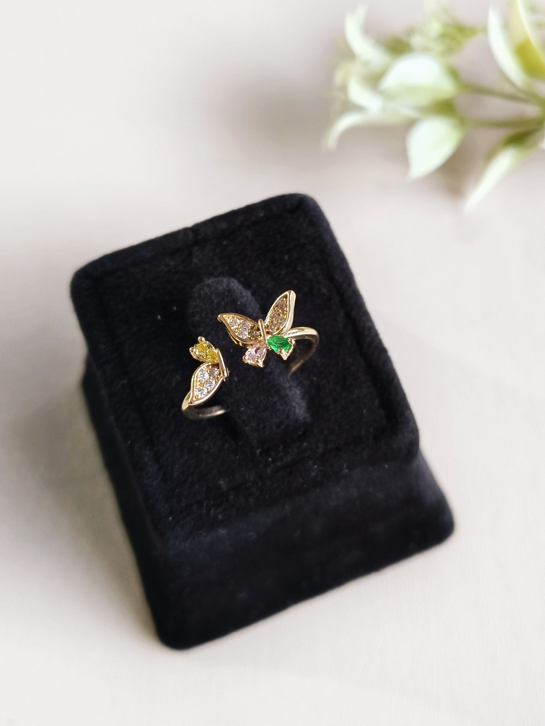 Beautifully crafted adjustable finger ring made with high-quality brass, premium polish, and high-finish plating. Studded with shiny American Diamonds for an elegant sparkle. The adjustable design comfortably fits most finger sizes.