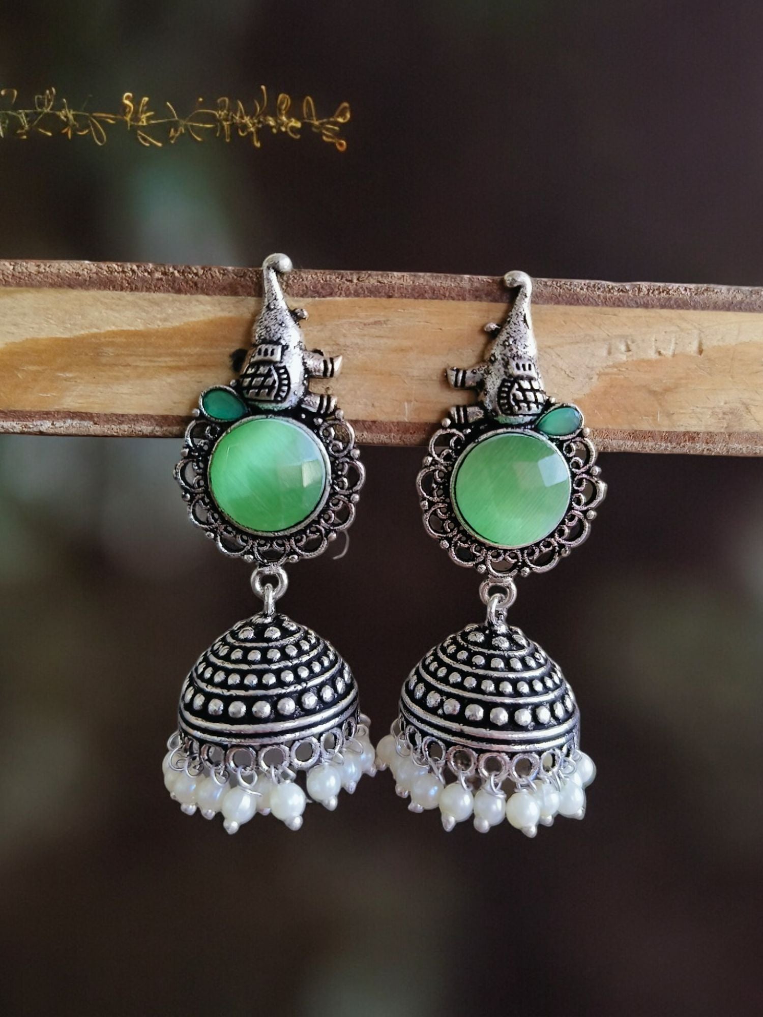 The Antique look Oxidised Pearl Earrings are a striking mix of old-fashioned design and contemporary craftsmanship. Ideal for adding a bit of class to your outfit or for finding the perfect present, the earrings are guaranteed to delight. Keep us in mind on Instagram @sarichka.fashion to find more gorgeous jewelry and design inspiration.