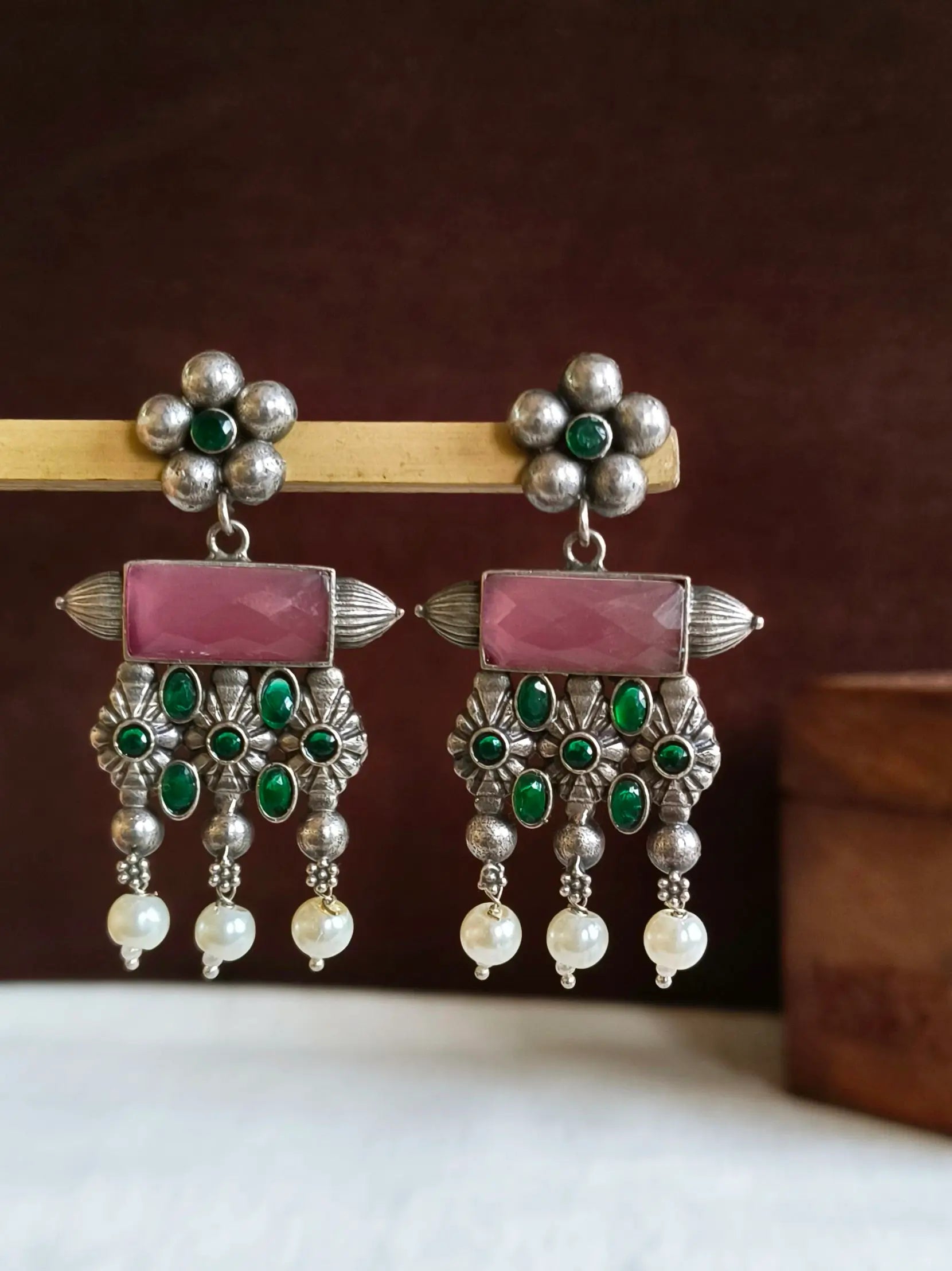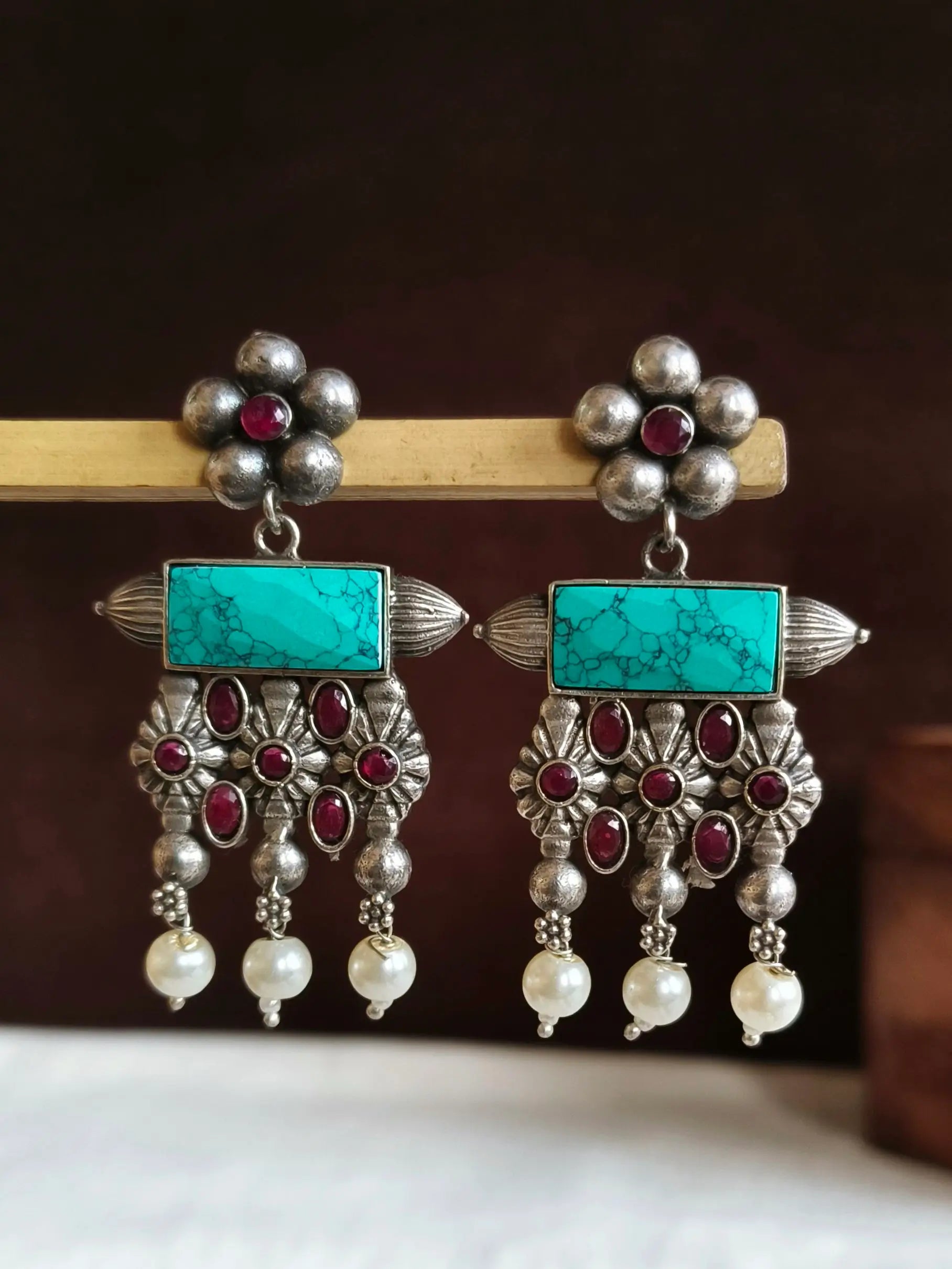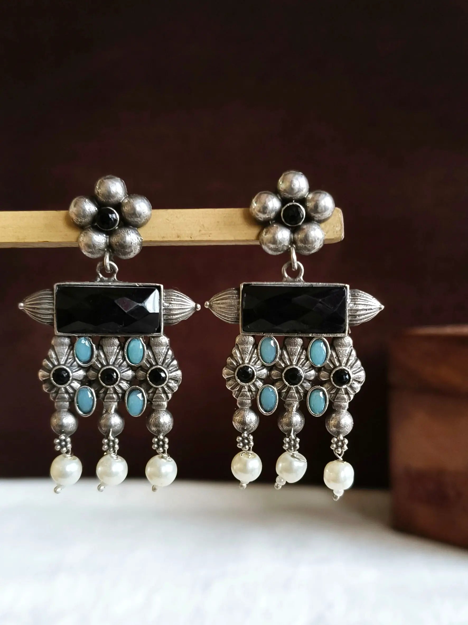 Enhance your look by wearing our antique Oxidised Meenakari Earrings. A striking blend of traditional and class. The exquisite earrings are made of high-end brass, with exquisite silver plating. They are created to add a hint timeless elegance to any style. The exquisite Meenakari piece showcases vivid enamels that are hand-painted to bring a pop of elegance and color.