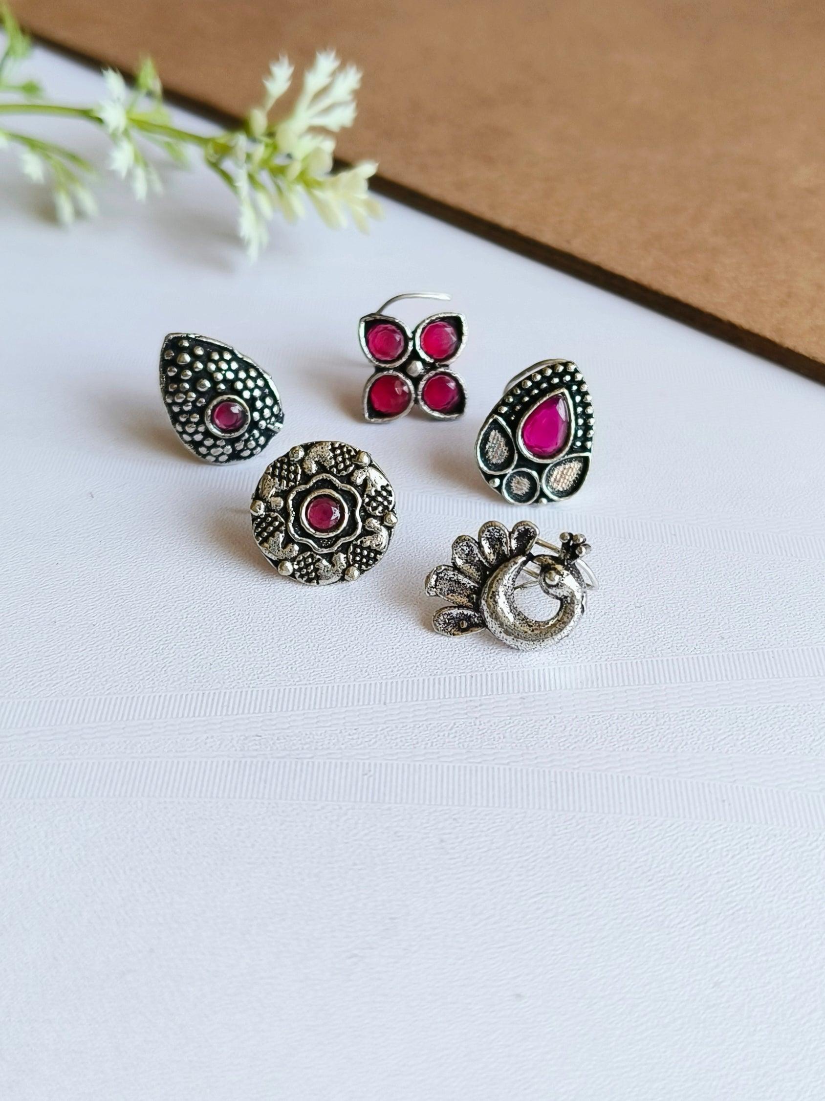 The collection includes a range of Oxidized Nose pins designed to meet the needs of diverse styles and tastes. From delicate floral designs to geometric and minimalist shapes Each design has been meticulously created to complement the beauty of your face and reflect your style. Their versatility can be used for everyday wearing, formal occasions, or as a stand-out item for celebrations.