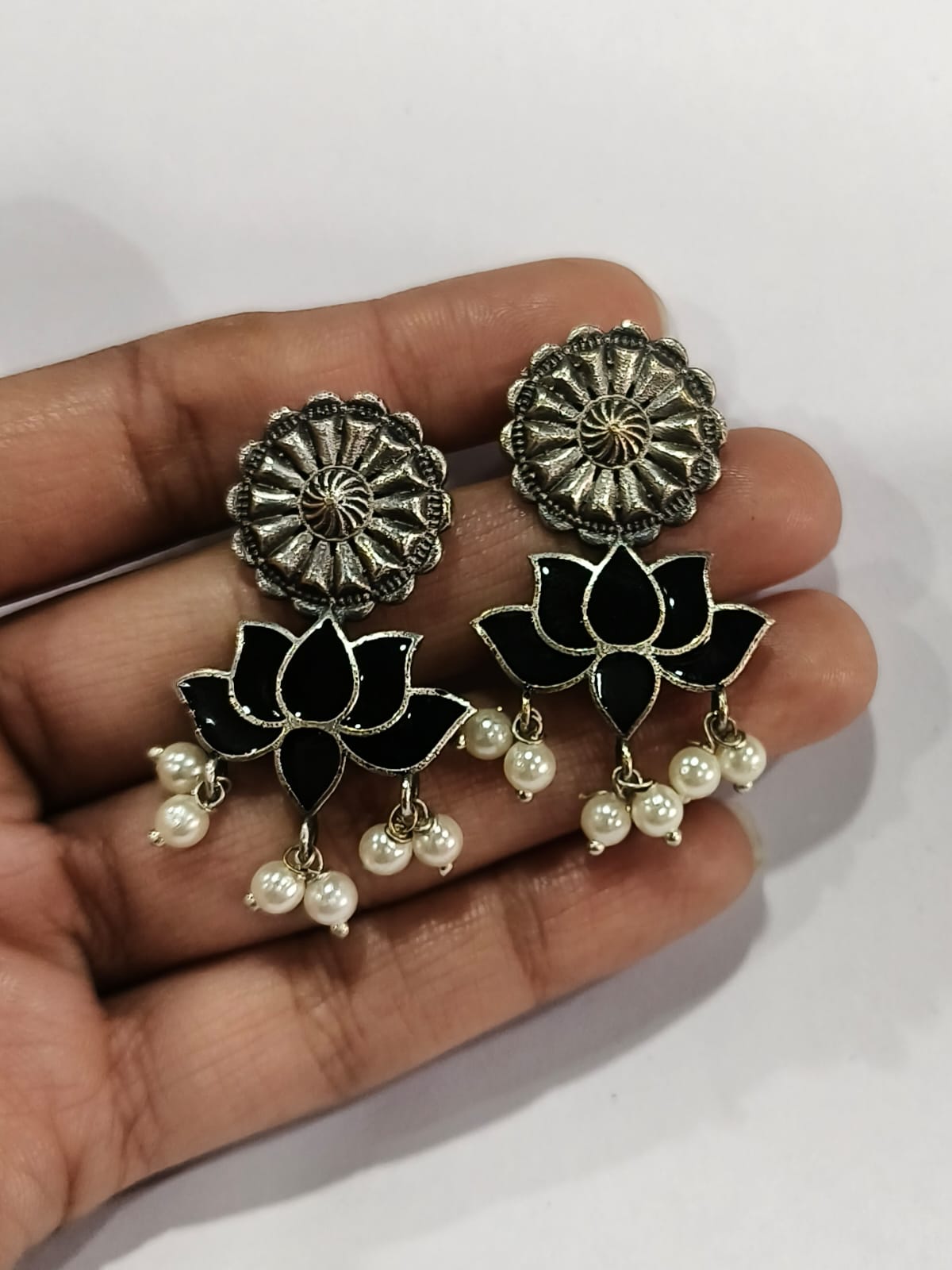Brass Oxidized Enamel Stud Earring | Sarichka