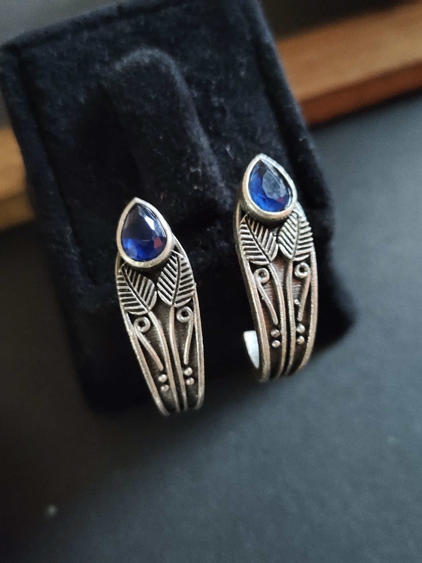 These silver-look alike oxidised hoop earrings are designed for everyday elegance, blending modern style with a vintage vibe. Their intricate oxidised finish and classic hoop shape make them a versatile accessory that enhances any casual or laid-back outfit. Ideal for daily wear or casual outings, these earrings bring effortless sophistication to your look. They also make a thoughtful gift for those who love simple yet stylish jewelry. Shop online from Sarichka to add this perfect piece to your collection.