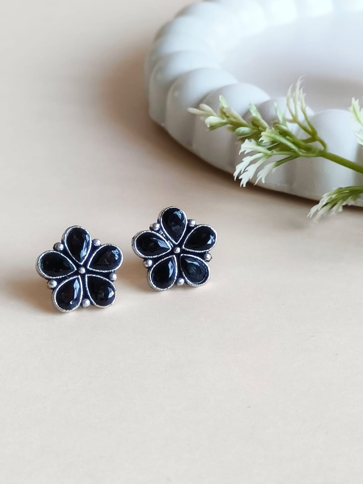 Daily Wear Floral Oxidised Stud Earrings | Sarichka