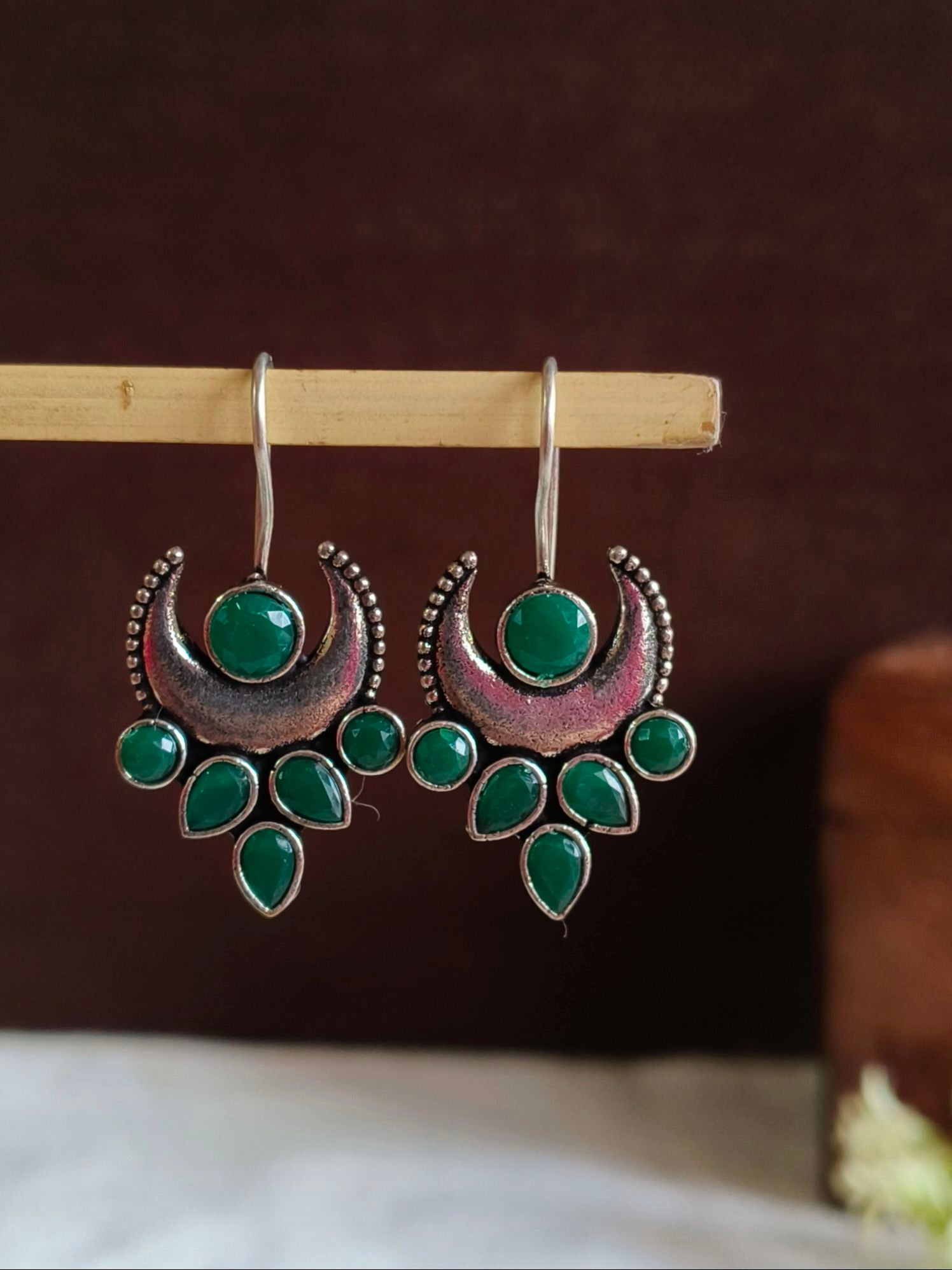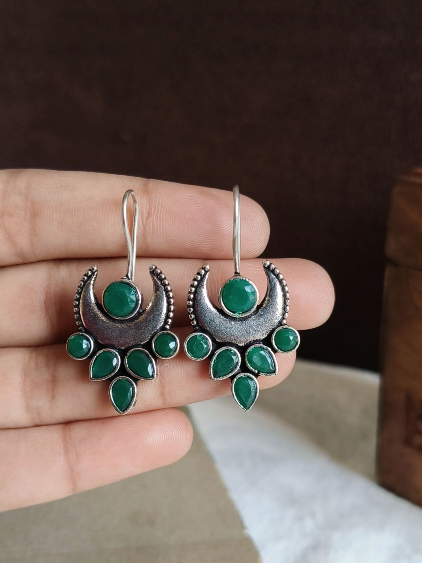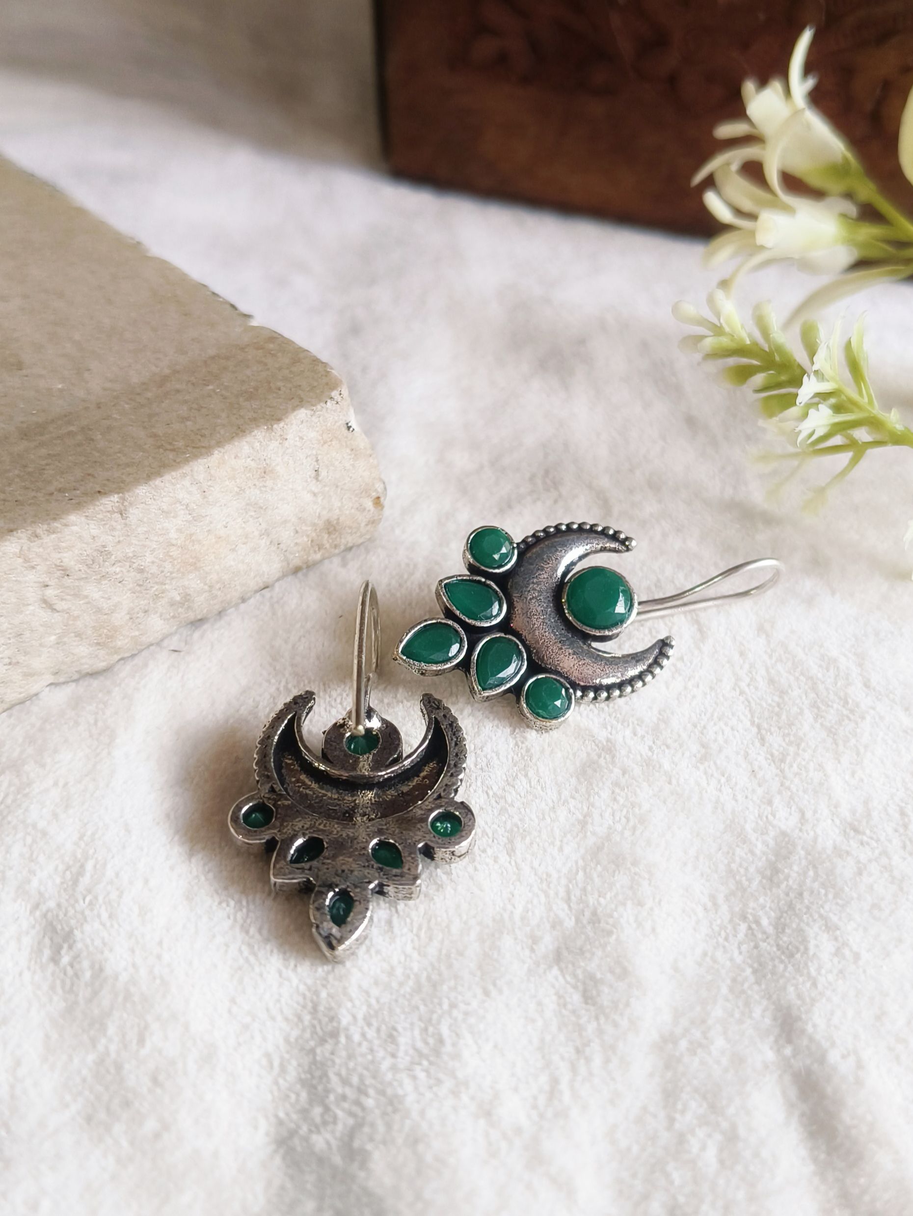 Dainty Oxidized Silver Crescent Moon Hook Earrings for Women