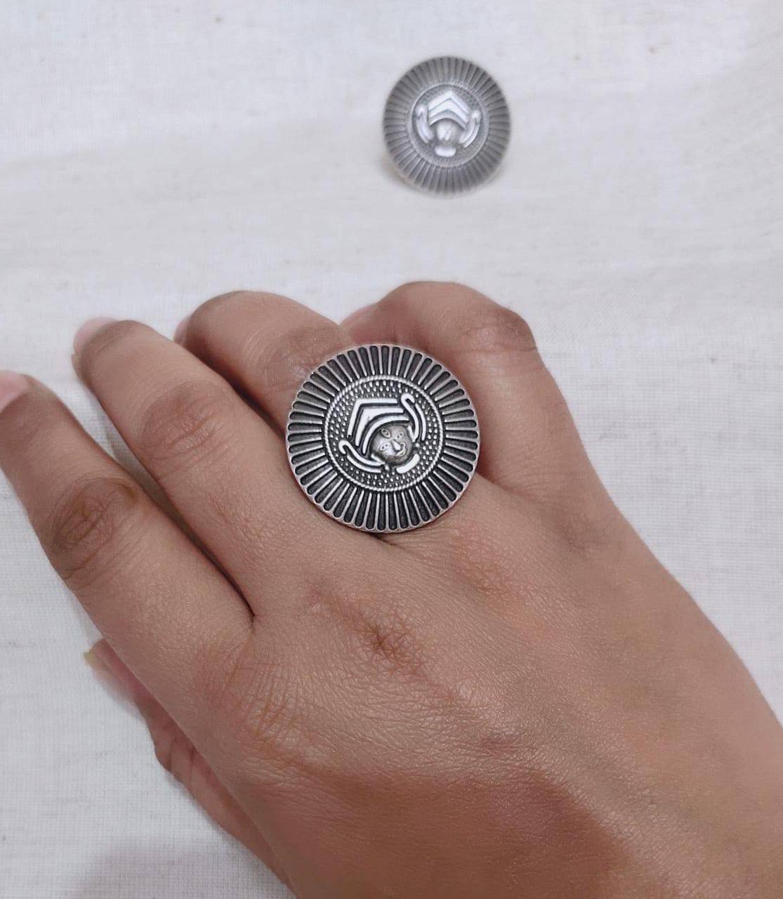 Divine Oxidised Mata Ji Finger Ring | Sarichka Fashion