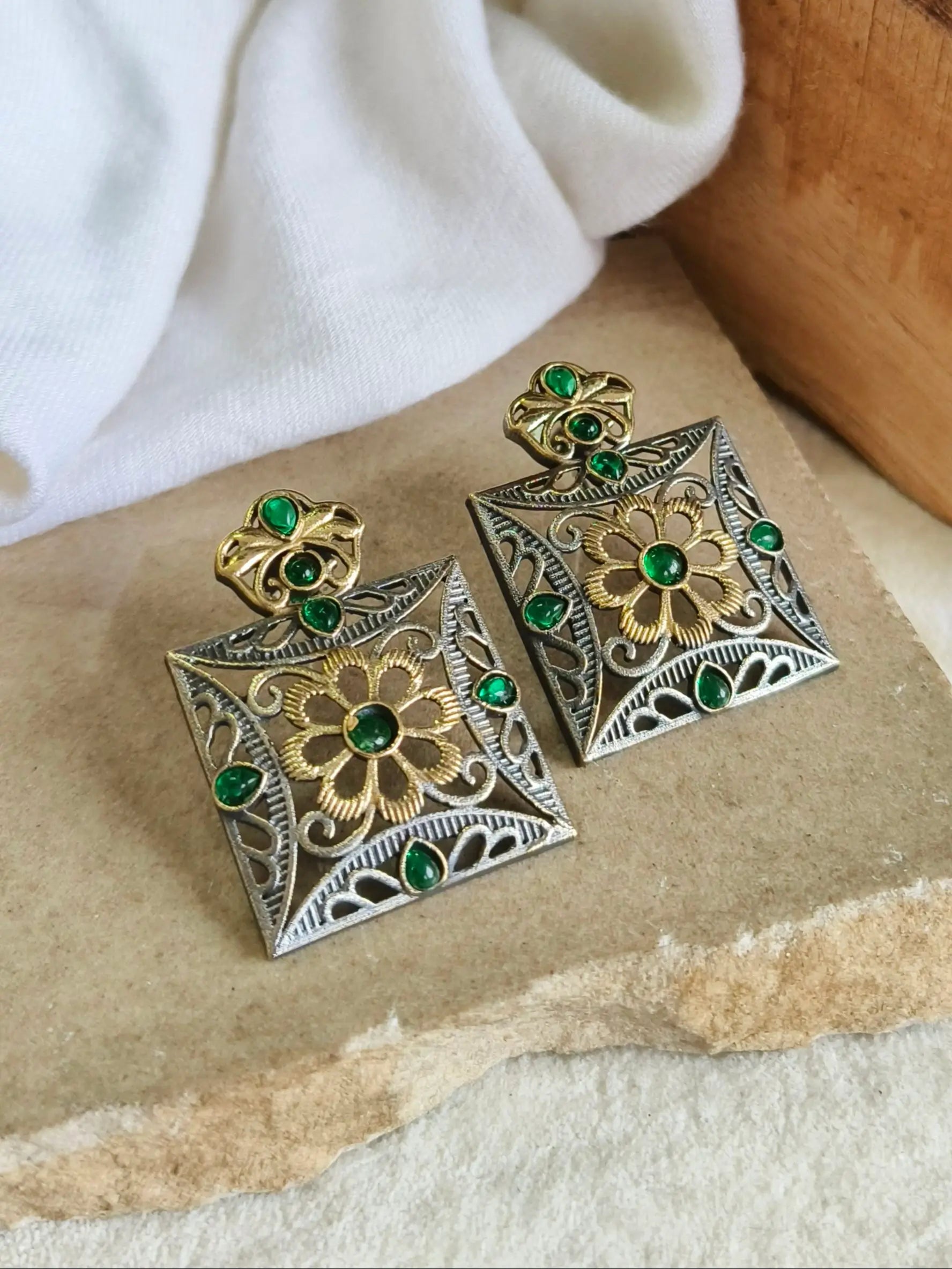 Material & Finish: Dual tone oxidised polish (silver & golden).