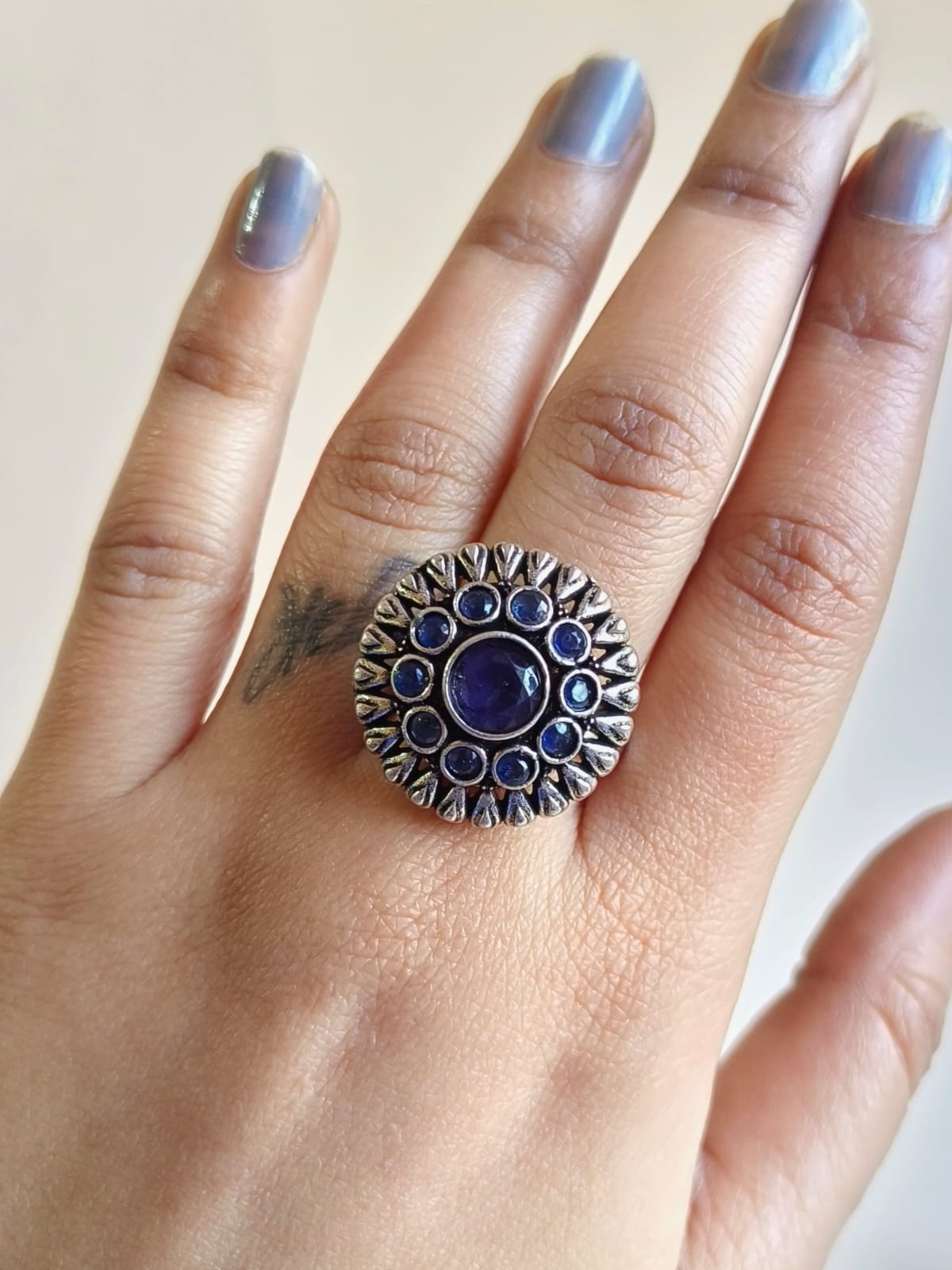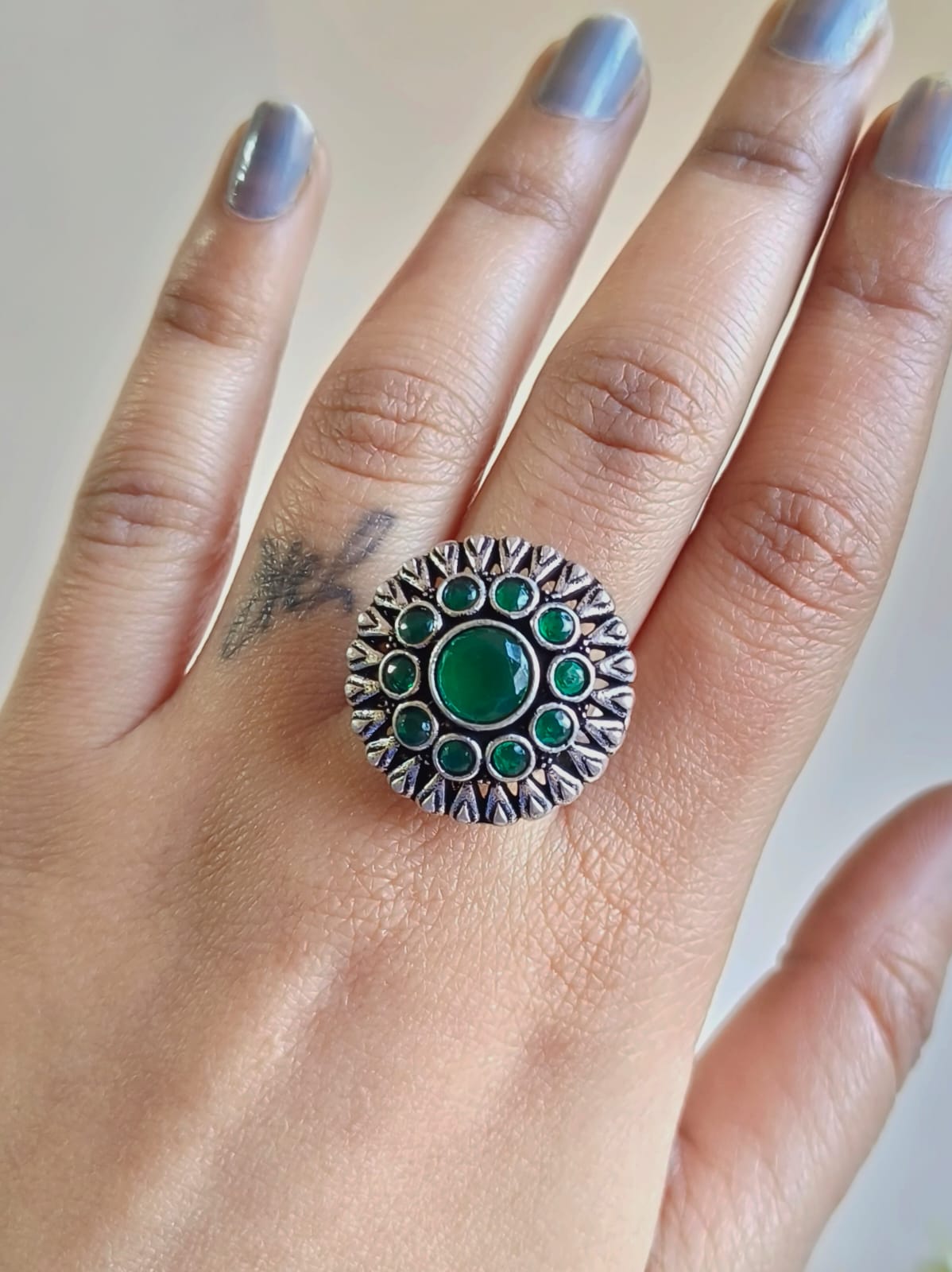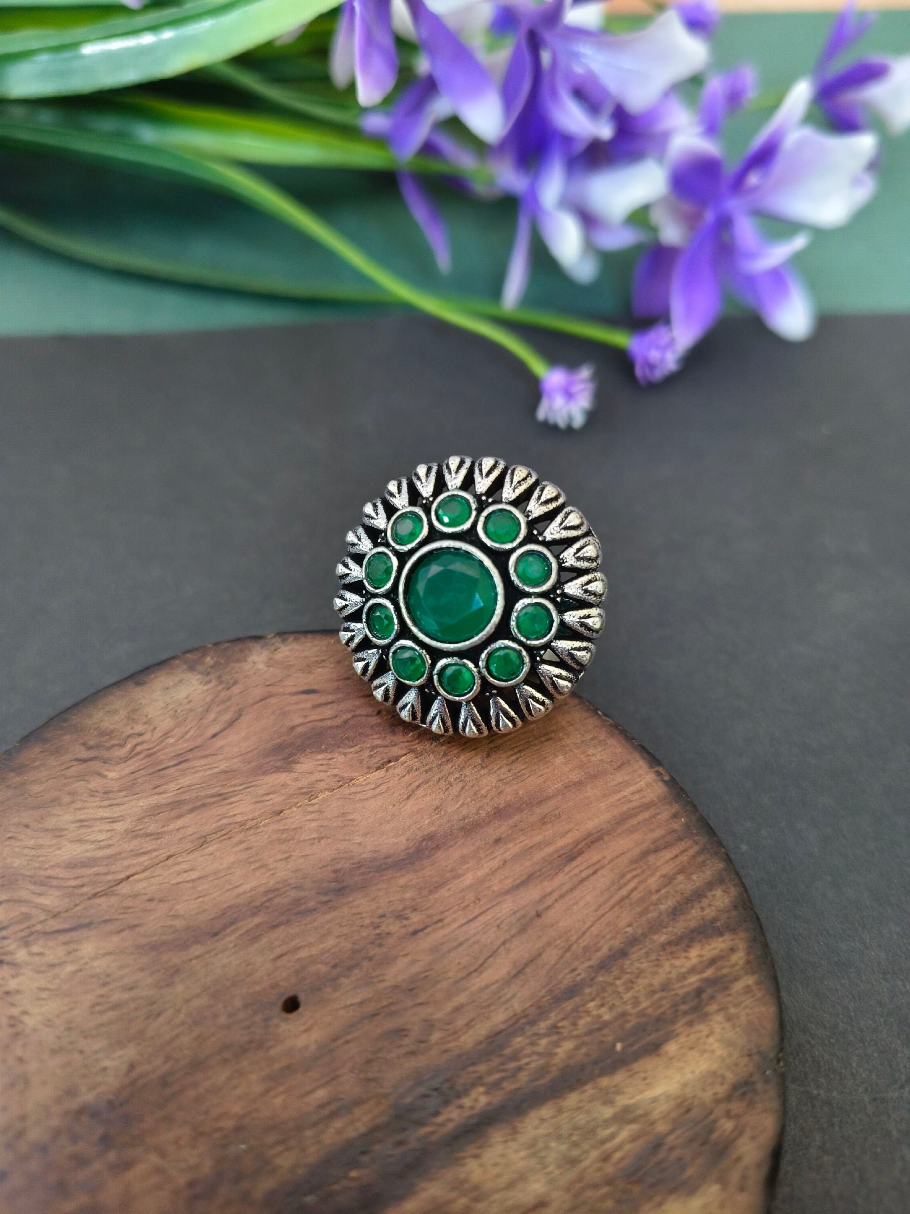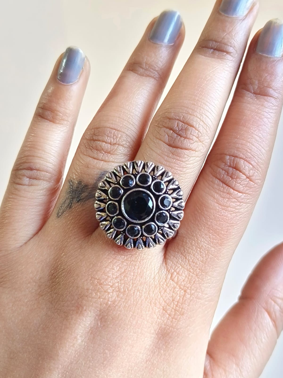 Find the charm of our stunning German Silver Ring, a stunning piece that effortlessly blends traditional elegance with modern charm. Made with the highest quality brass, and then expertly oxidized to give an old-fashioned look the ring exudes the elegance and sophistication.