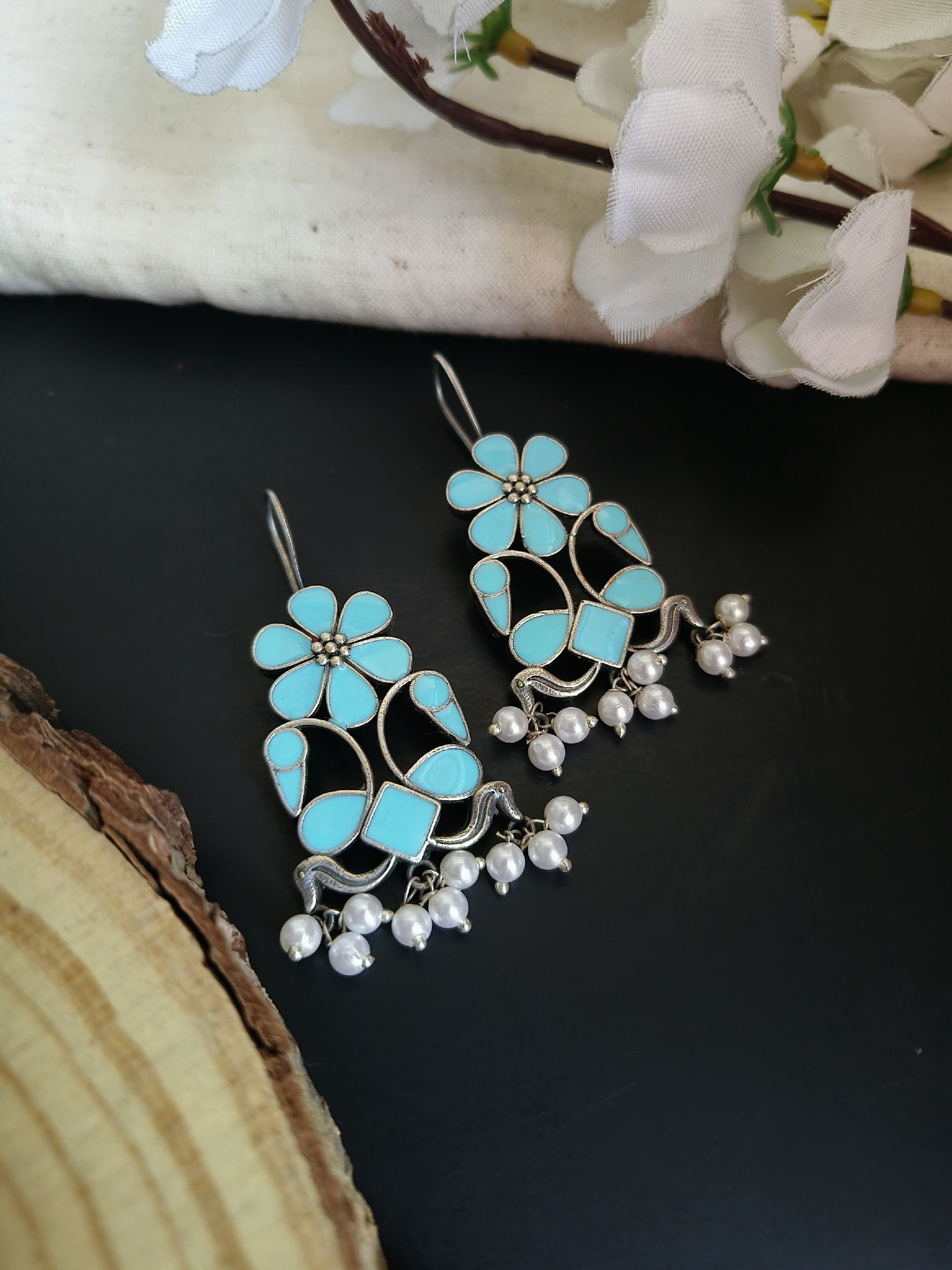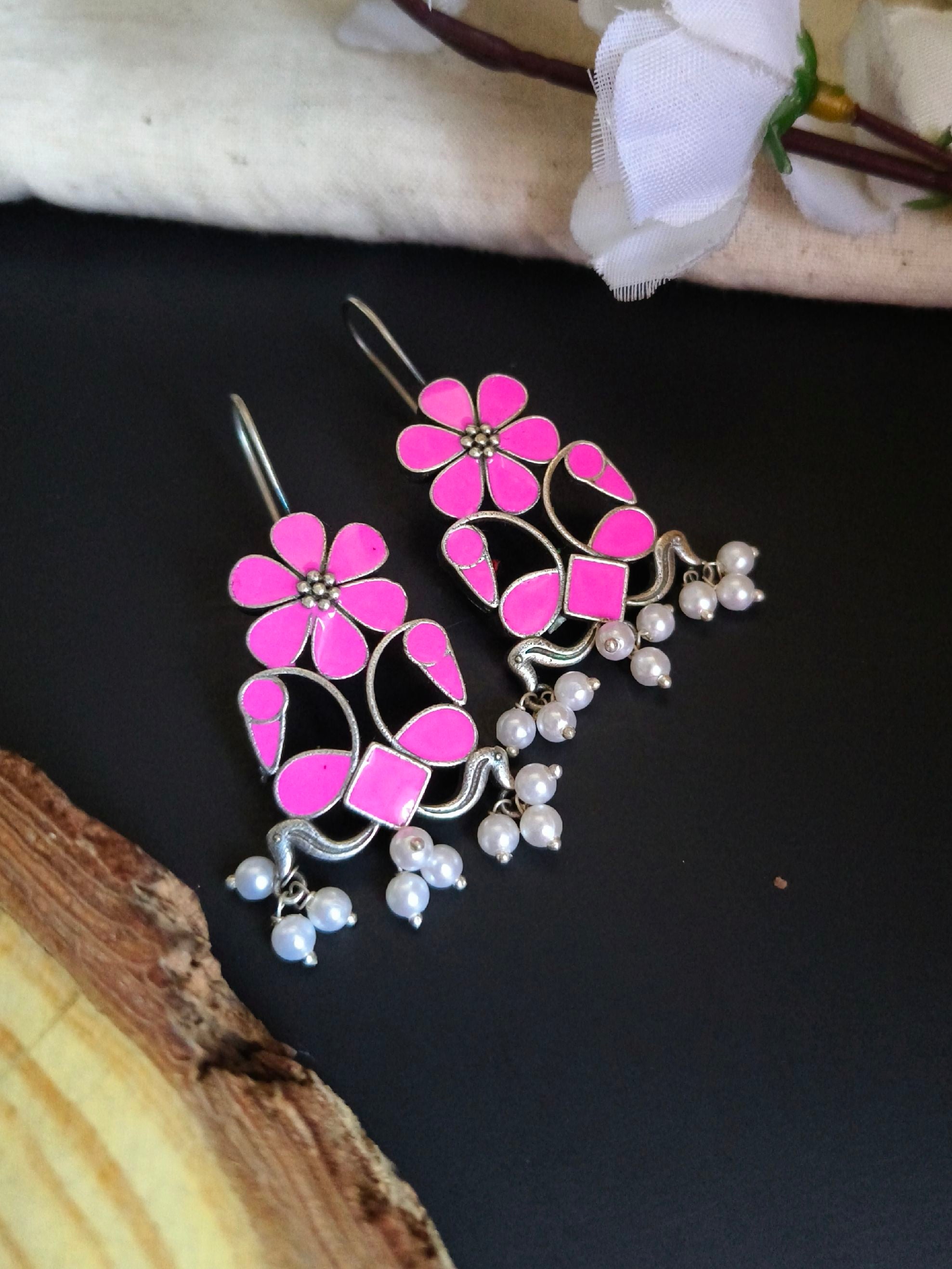 Constructed of durable brass and covered with top-quality silver plating These Floral Hook Earrings Silver are made to be stunning and durable. Oxidation adds an unique antique look to the silver, which gives the earrings an attractive style. The design of the hook guarantees a snug comfort and a comfortable fit they are perfect for day-to-day wear.