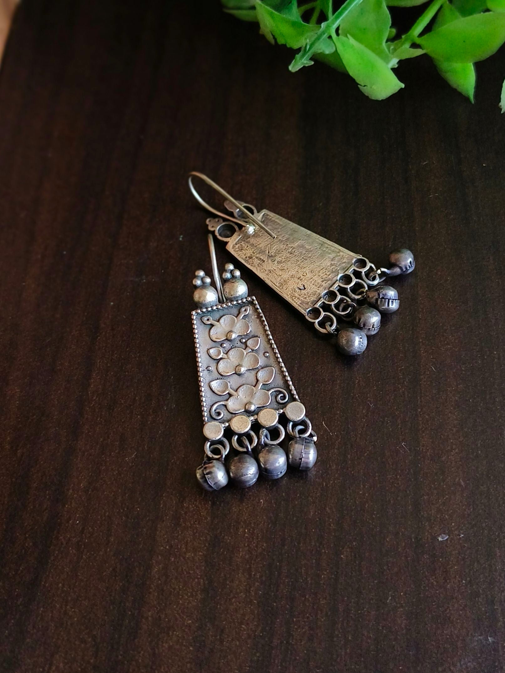 Add everyday elegance to your jewelry collection with these floral oxidised hook earrings from Sarichka Fashion. Designed with intricate flower motifs and a classic oxidised silver finish, these earrings bring a timeless ethnic charm to your look. Lightweight and comfortable, they are ideal for daily wear, office attire, and casual outings.