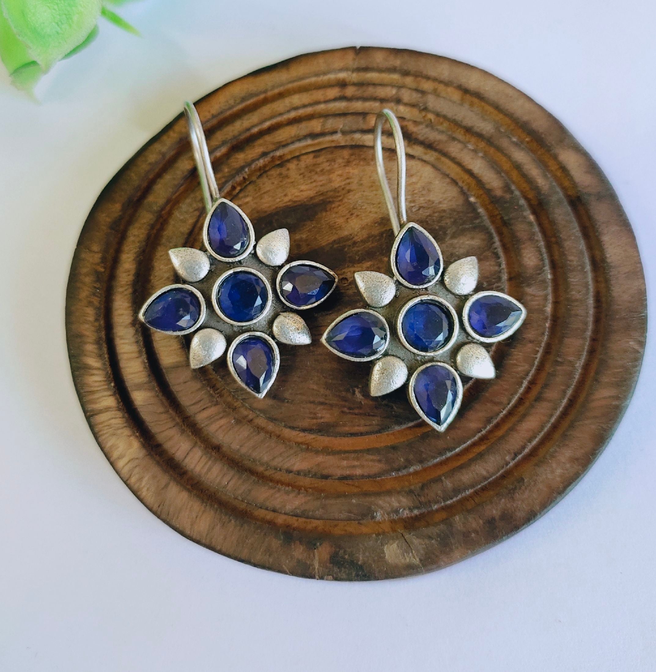 Improve your style by putting on our Floral Replica Stone oxidized hook earring. Made with precision from sturdy brass, and featuring sleek sterling silver plating. These earrings were created to be a standout. The intricately oxidized details with striking stones make for a stylish style that effortlessly blends modern fashion with old-fashioned charm.