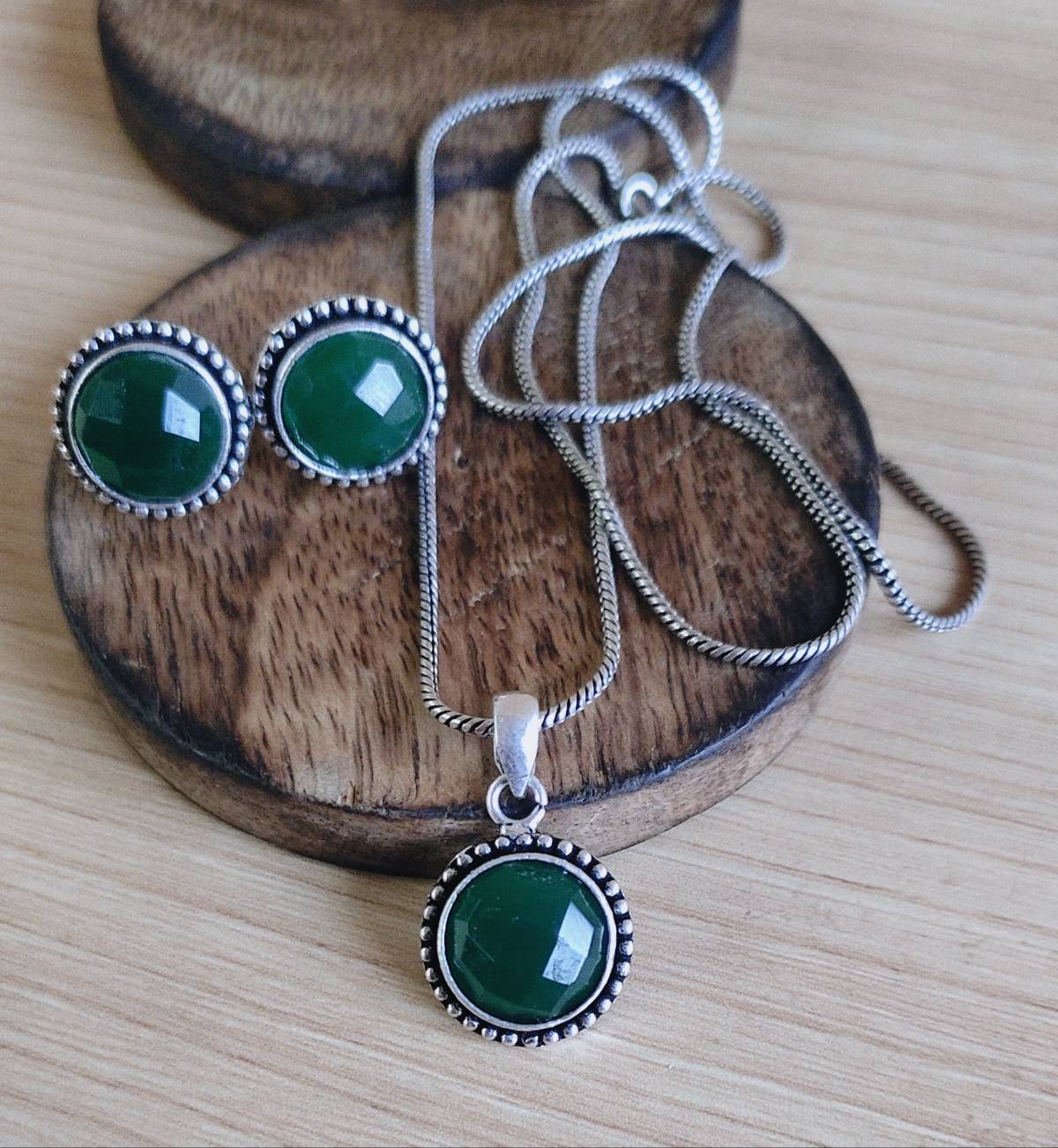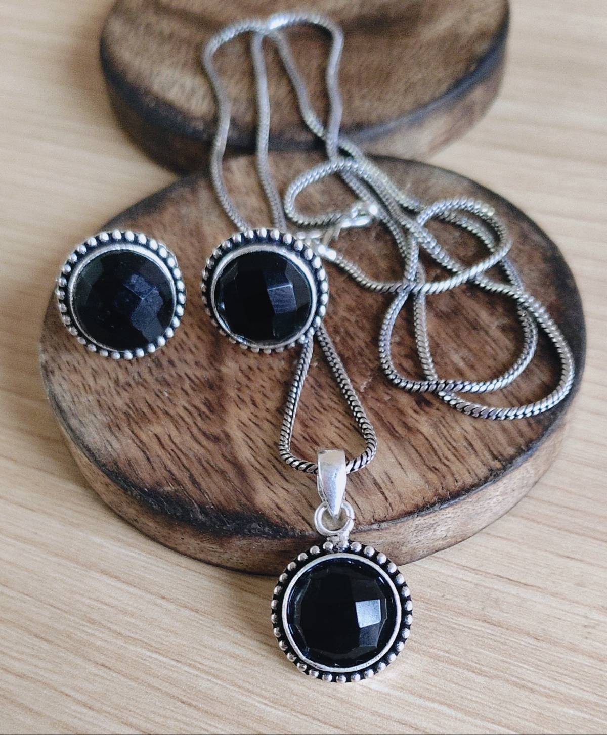 German Silver Oxidised Chain Pendant Set  | Sarichka