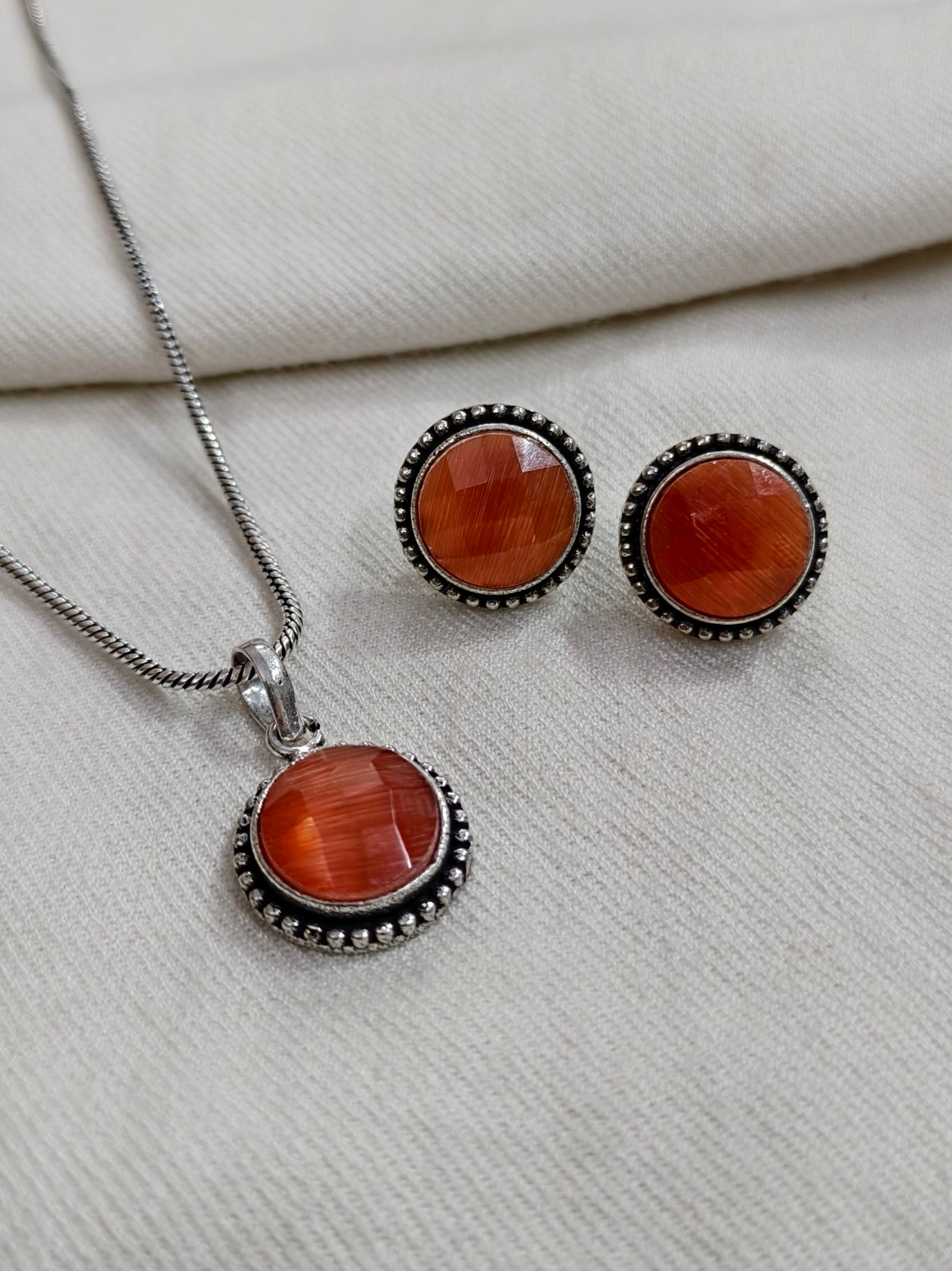 German Silver Oxidised Chain Pendant Set | Sarichka