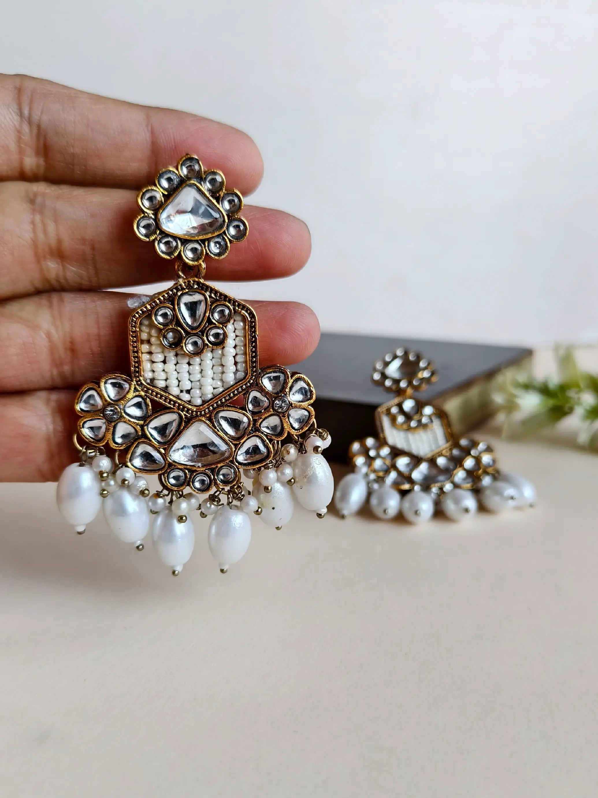 • Design Elements: Traditional kundan polki stones in a graceful dangler silhouette