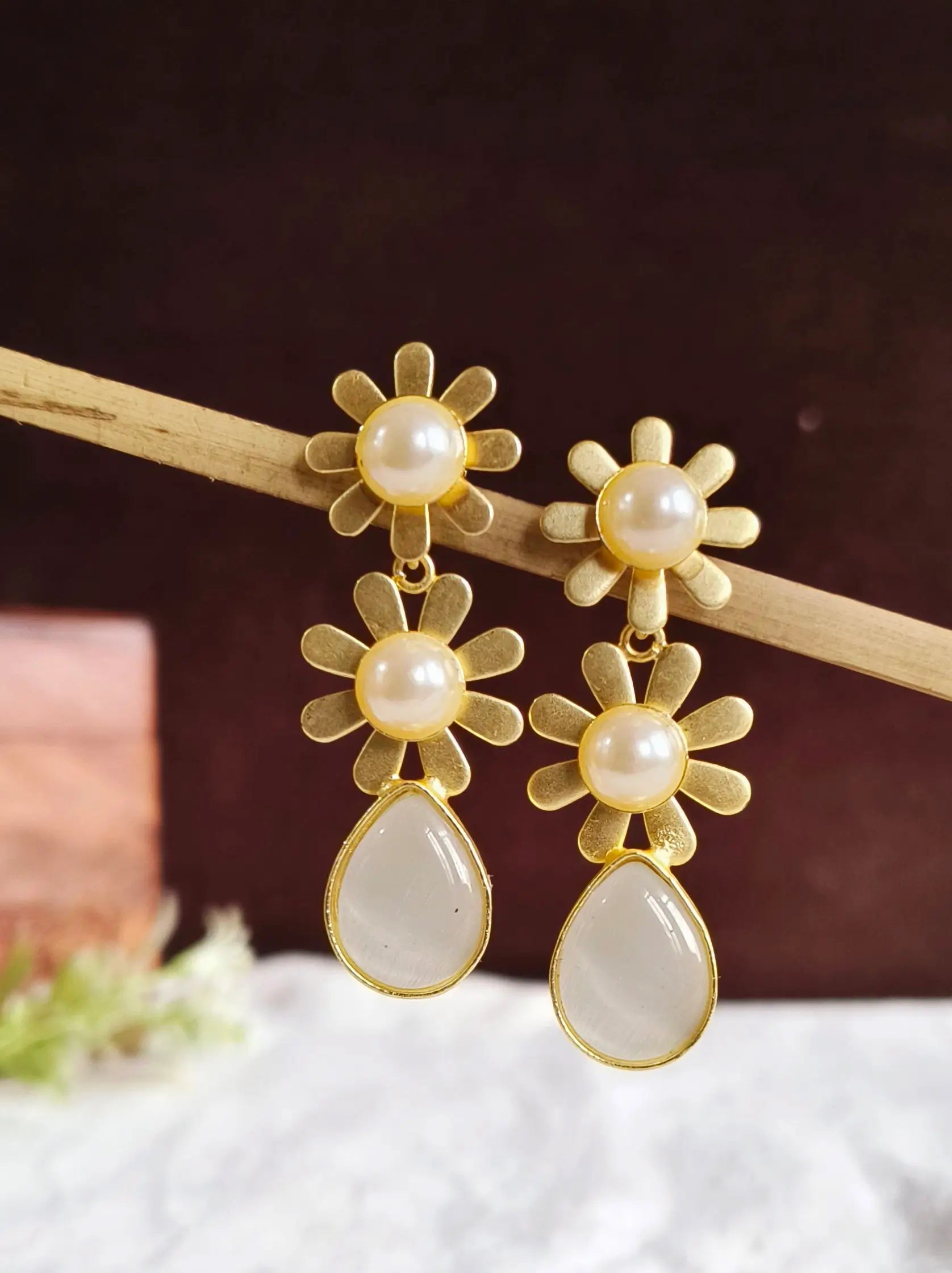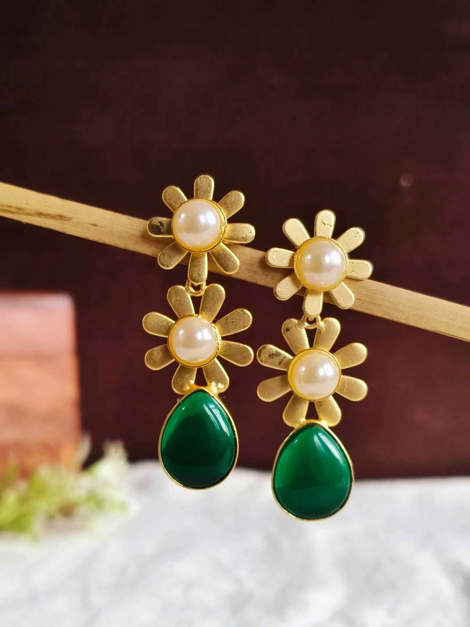 Elevate your accessory collection with these gold-plated floral dangler earrings, adorned with delicate pearl beads that add charm and elegance to every look. Their artistic floral detailing makes them perfect for wedding wear, festive celebrations, parties, and special occasions. Lightweight and versatile, these danglers also complement casual and office outfits with equal grace. A beautiful blend of tradition and modernity, they make a thoughtful gift for loved ones. Pair them with ethnic, fusion, or contemporary wear to create an effortlessly stunning style.
