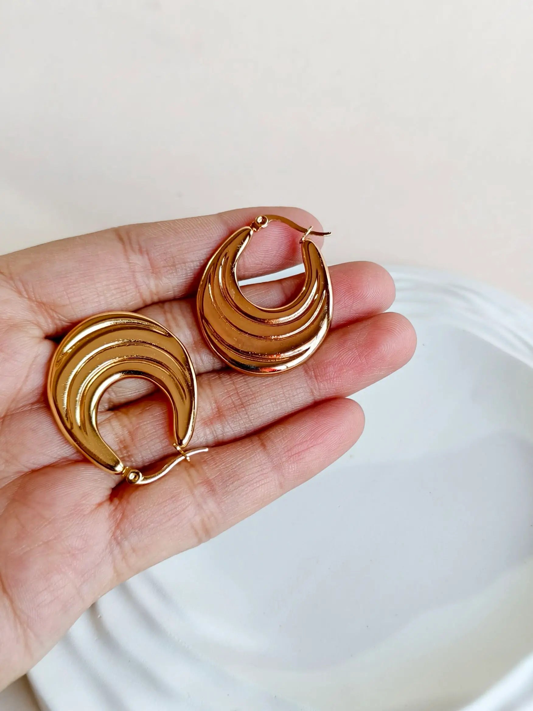 Design Elements: Features a sleek U-shaped hoop design with minimalist appeal for modern everyday styling.