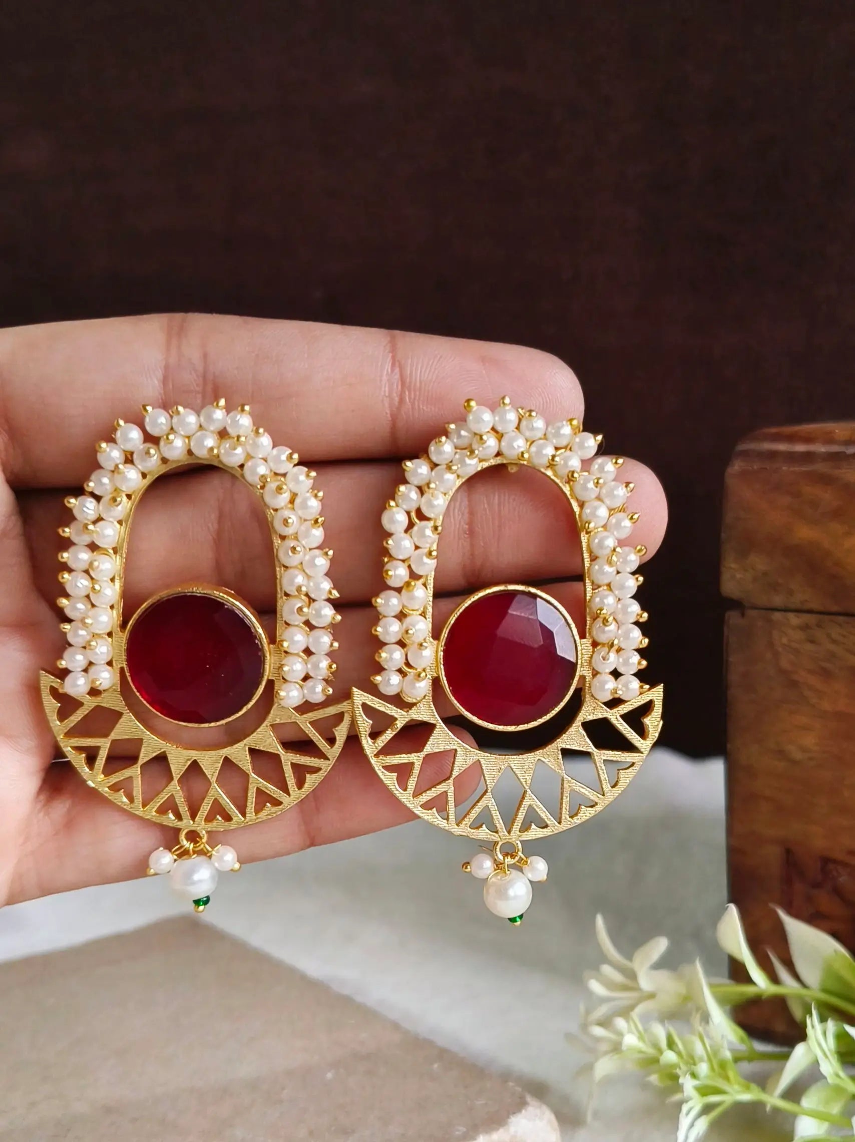 Add a modern touch to your style with these gold-plated contemporary earrings, crafted with premium Monalisa stones that offer a soft, luminous sparkle. Their sleek and artistic silhouette makes them perfect for party wear, festive outings, office looks, and special occasions. An excellent gift choice, these earrings complement both minimal and statement looks with ease.