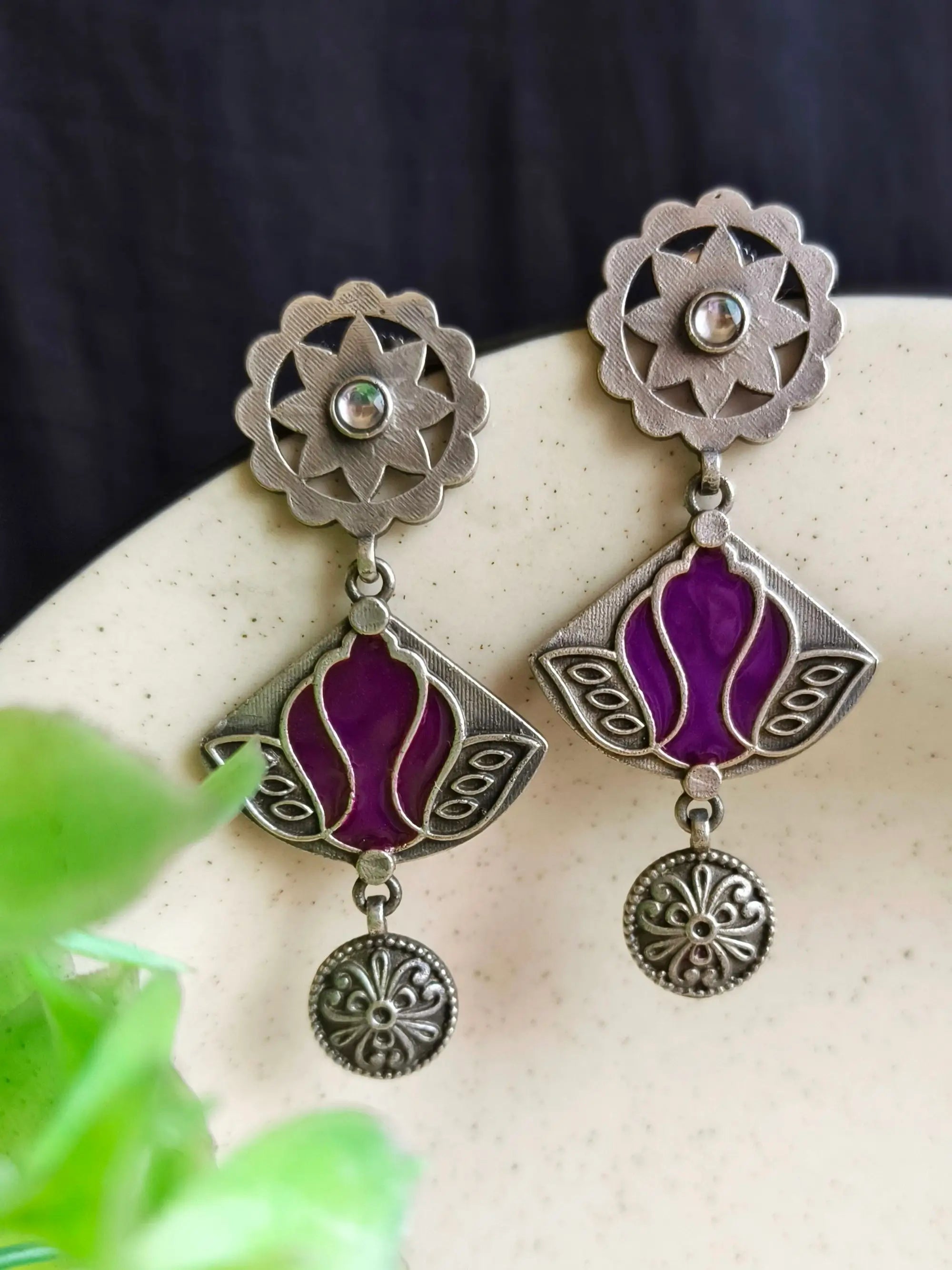 Hand-Painted Meenakari Silver Dangler Earrings with Festive Charm | Sarichka