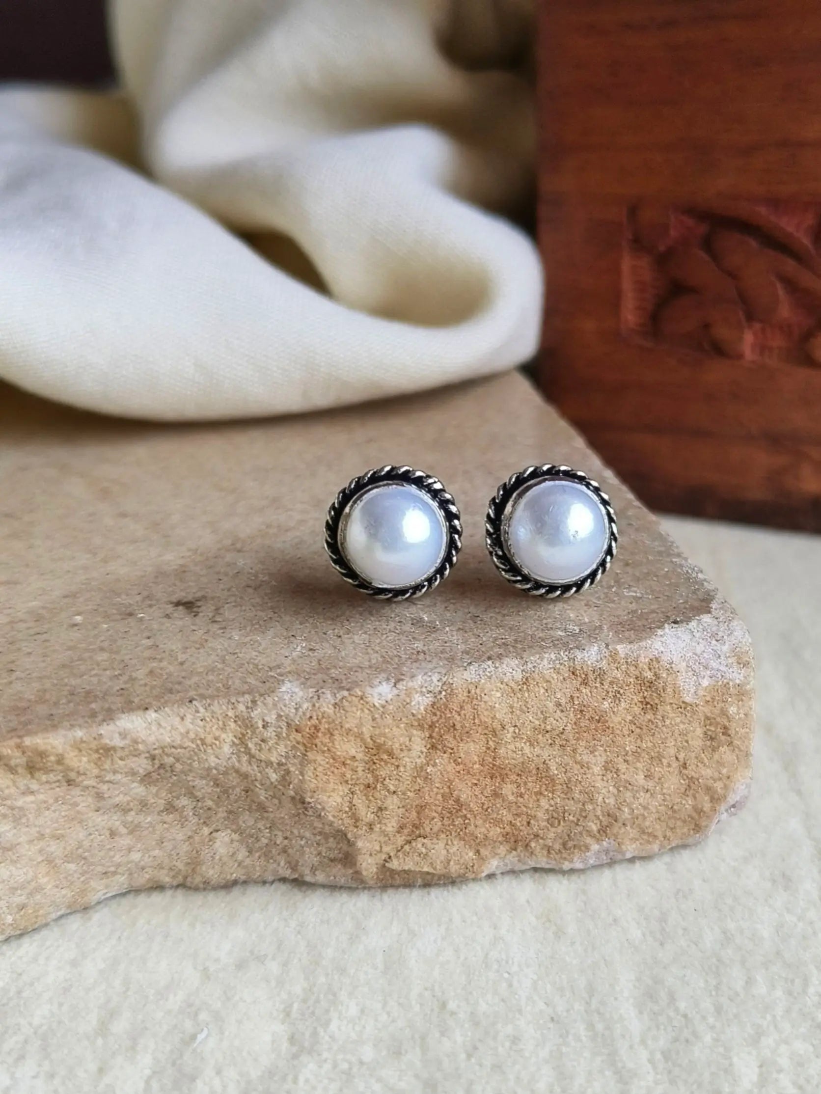 Bring effortless elegance to your everyday style with these handmade oxidised pearl stud earrings from Sarichka Fashion. Featuring a subtle silver-toned finish and classic white pearl at the center, these earrings are a timeless choice for minimalist jewelry lovers. Their lightweight design makes them perfect for all-day wear while adding a graceful touch to both traditional and modern outfits.