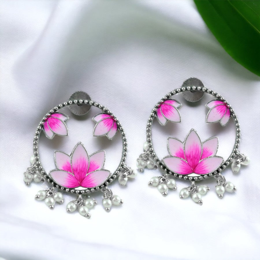 Lotus Style Oxidised Enamel Earrings | Sarichka