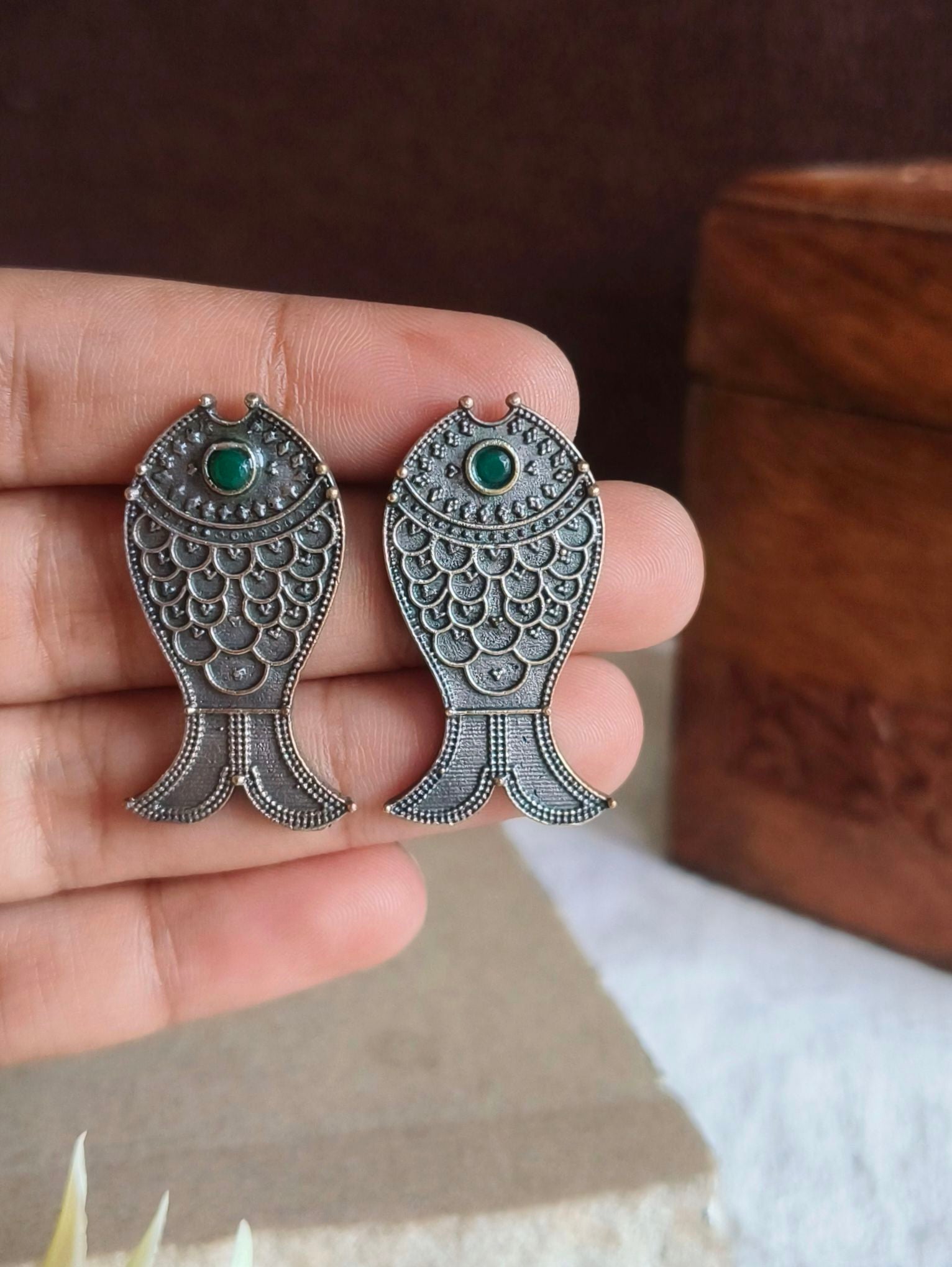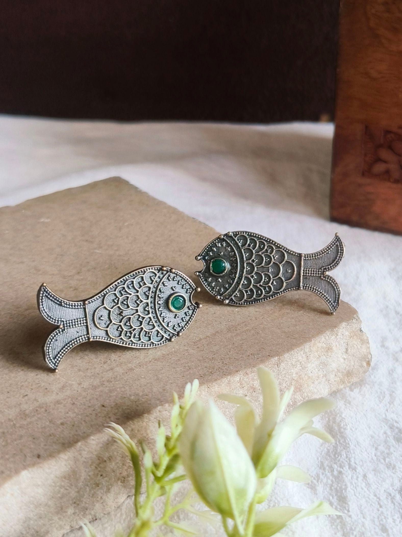 Oxidised Fish Stud Earrings