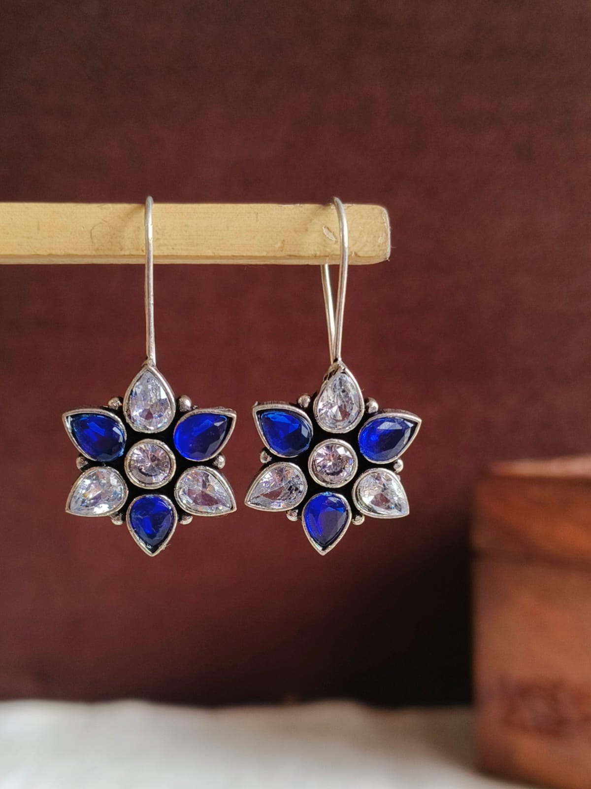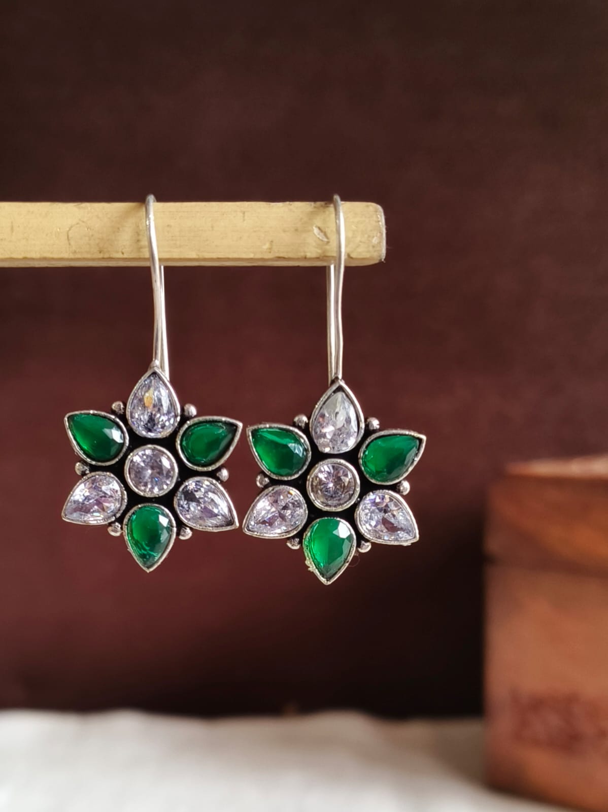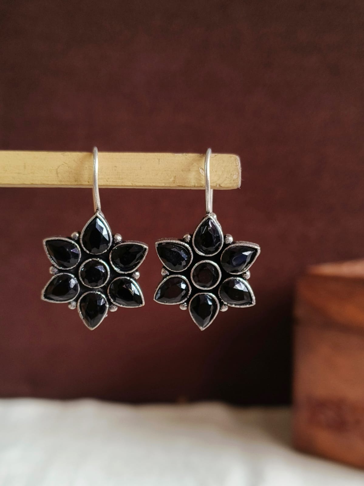Oxidised Floral Hook Earrings with Multi-Color Stones | Sarichka