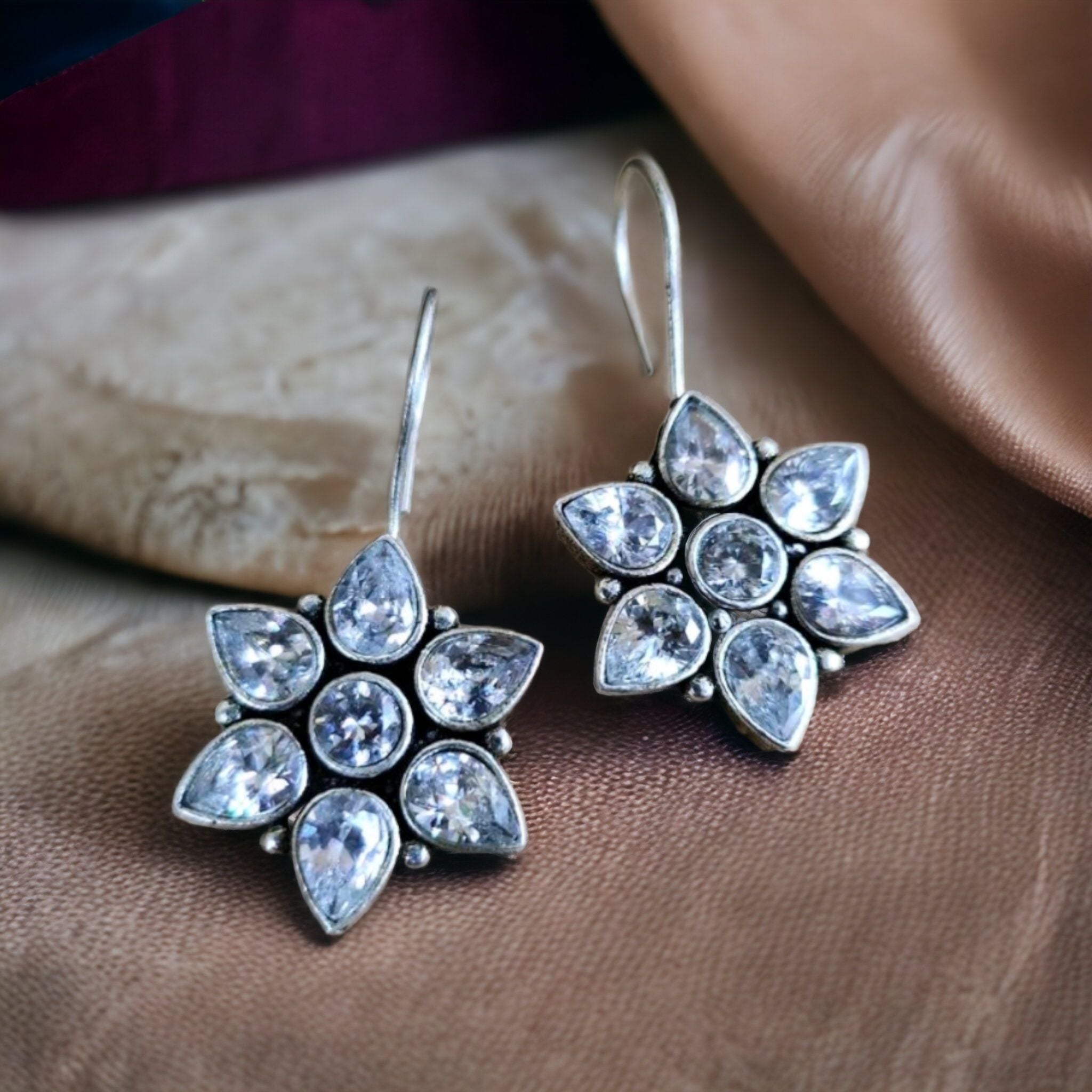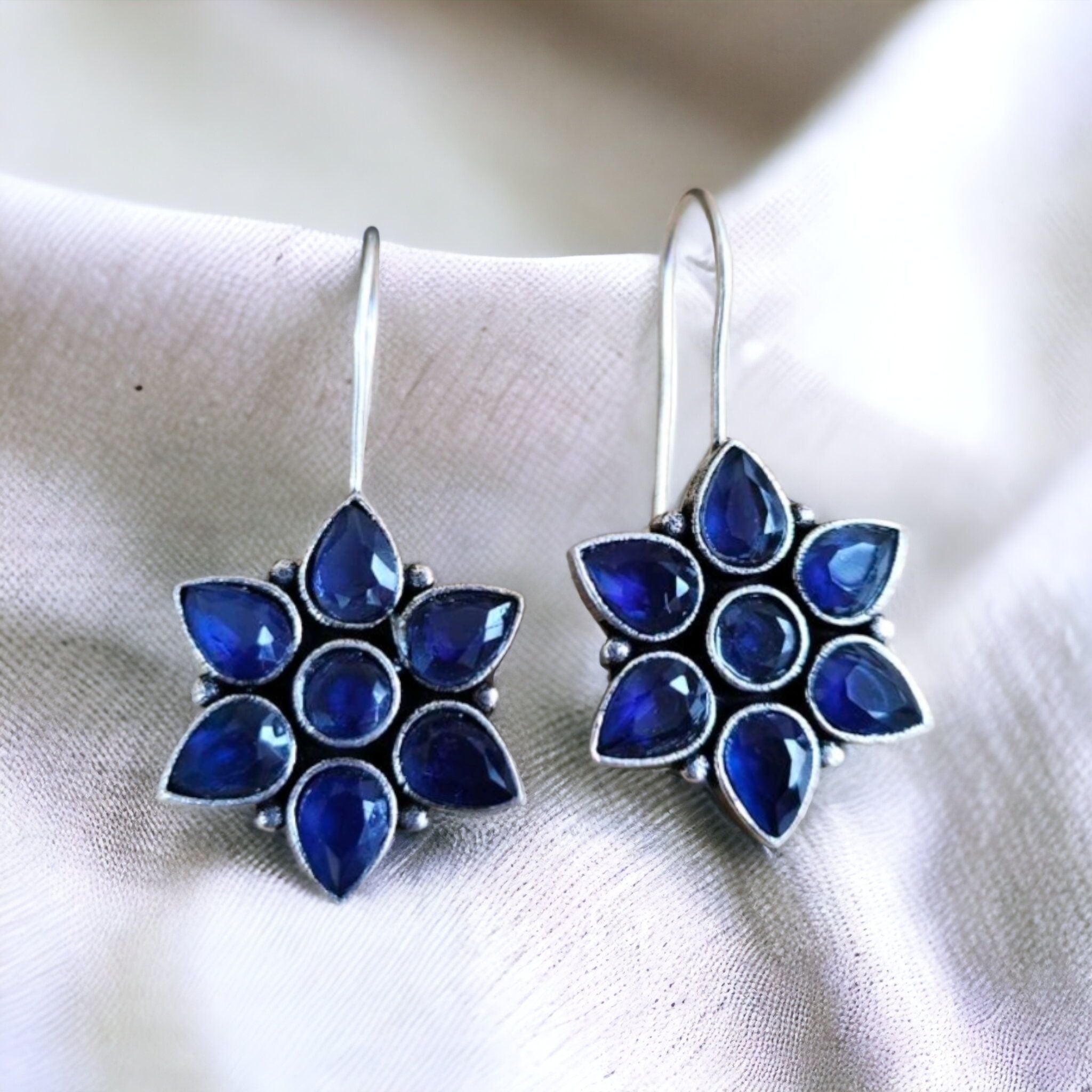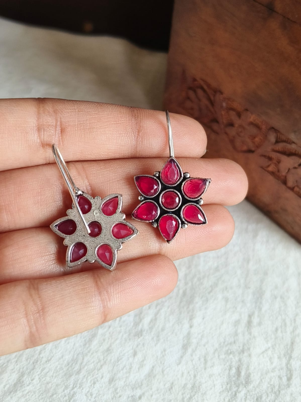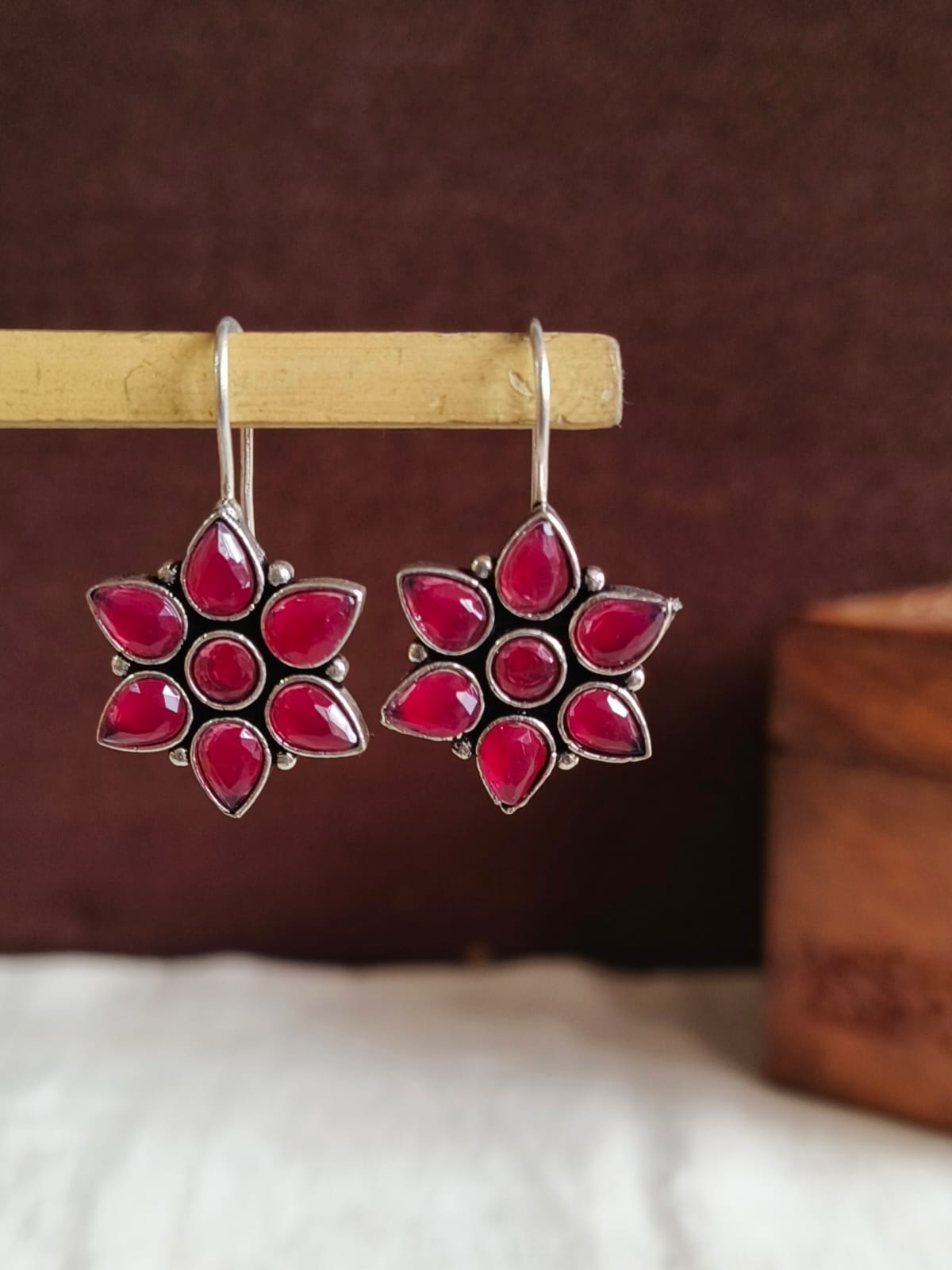 Oxidised Floral Hook Earrings with Multi-Color Stones | Sarichka