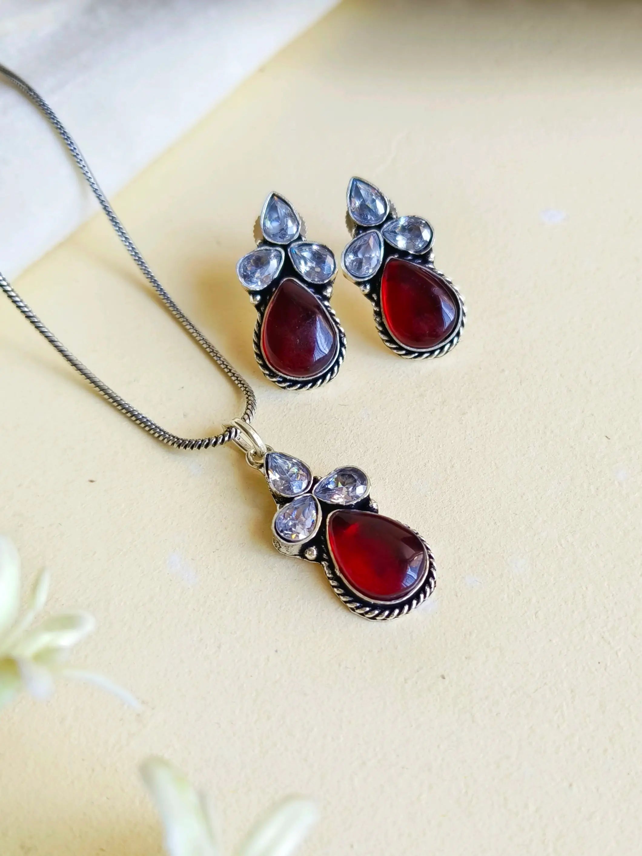 Add a dash of elegance to your everyday look with this exquisite oxidised Monalisa chain pendant set, featuring lightweight design and intricate craftsmanship.