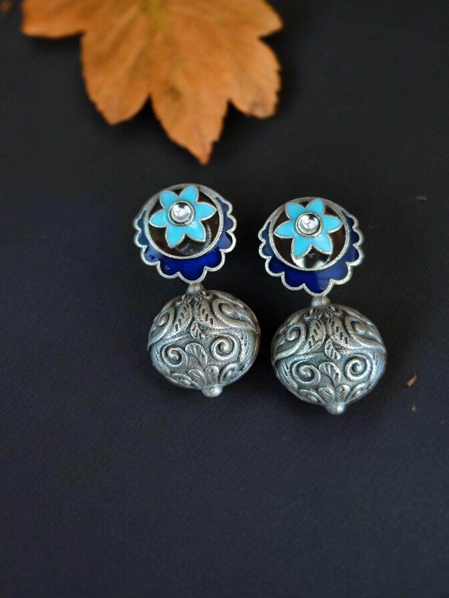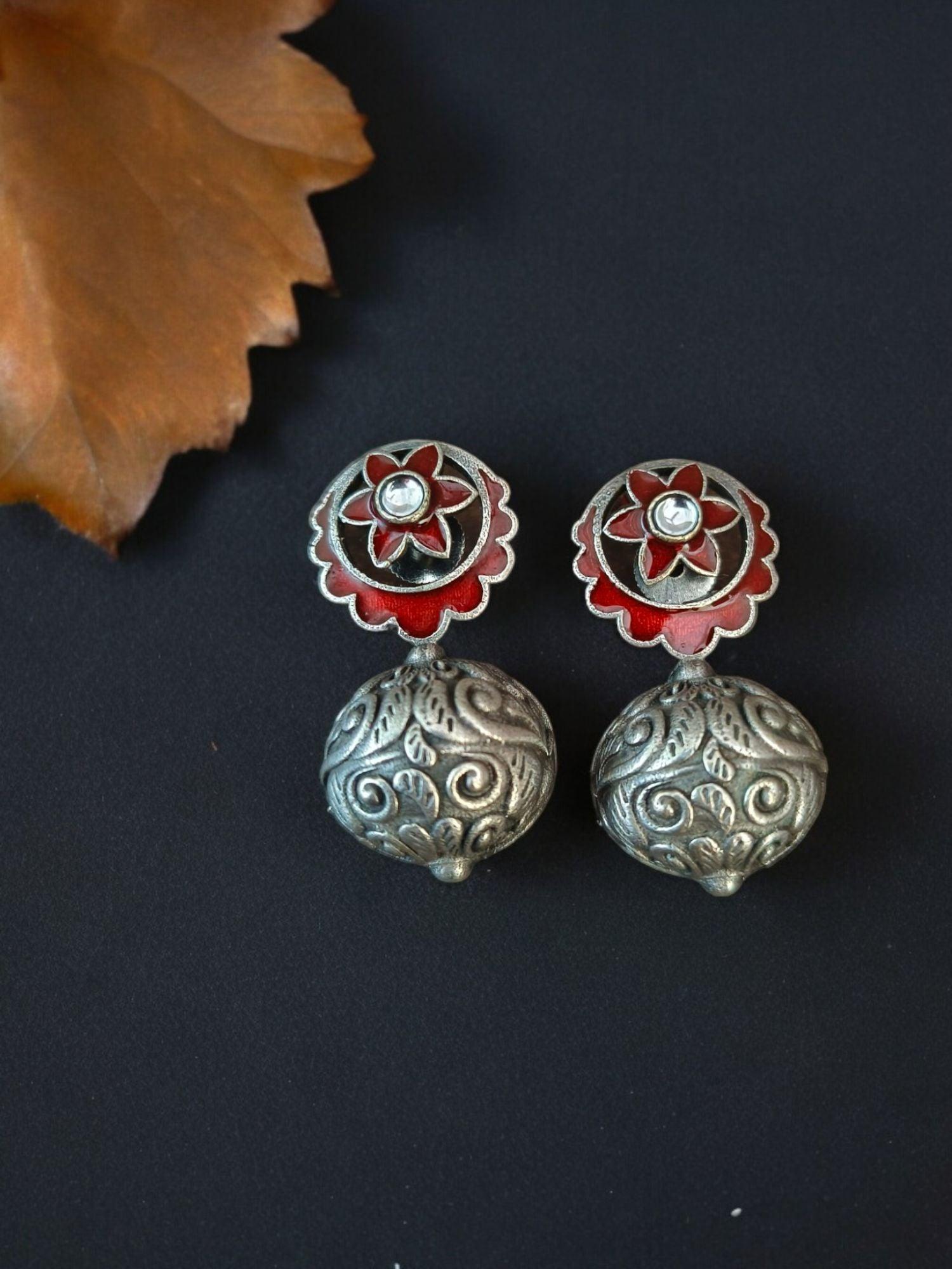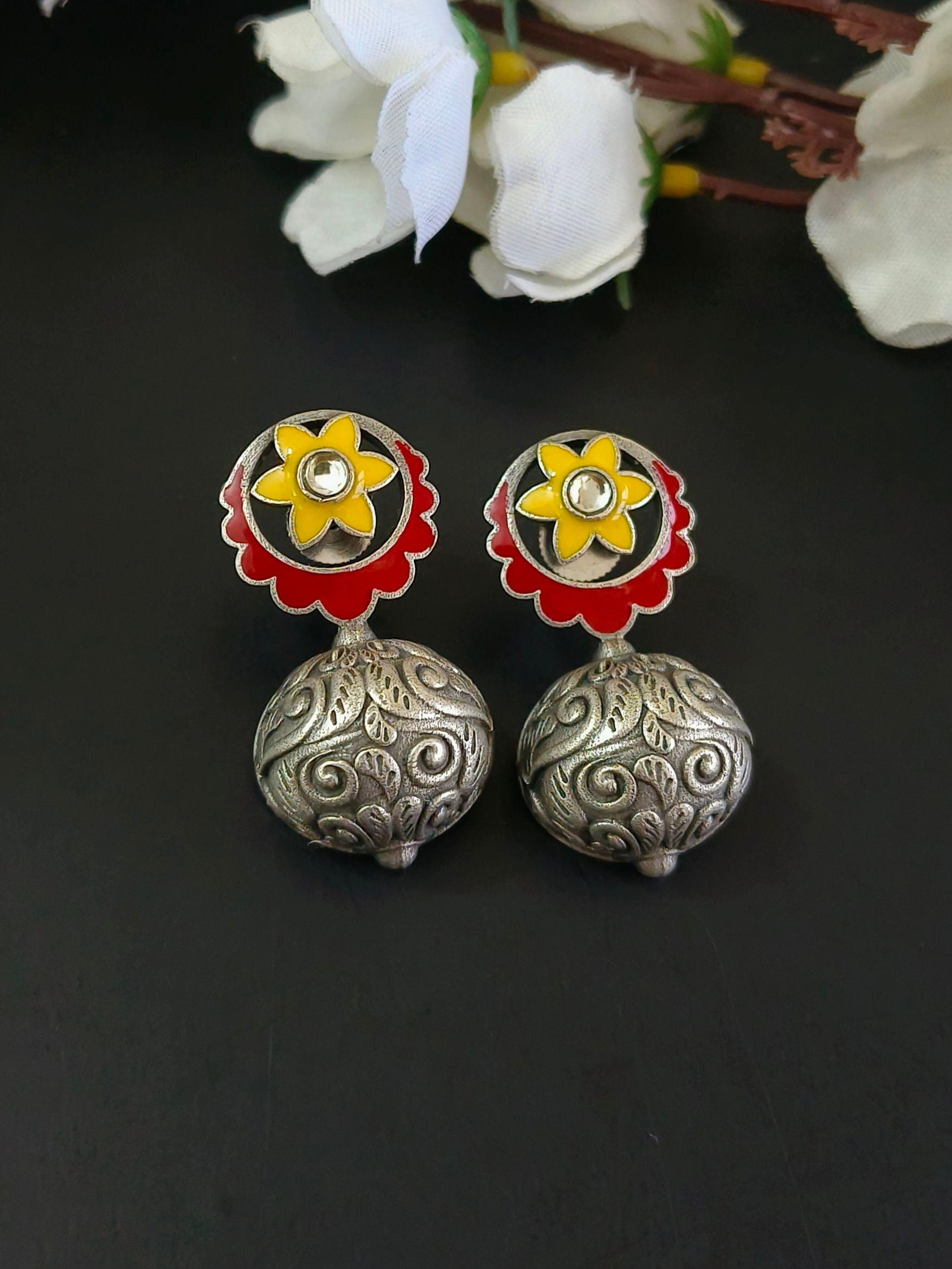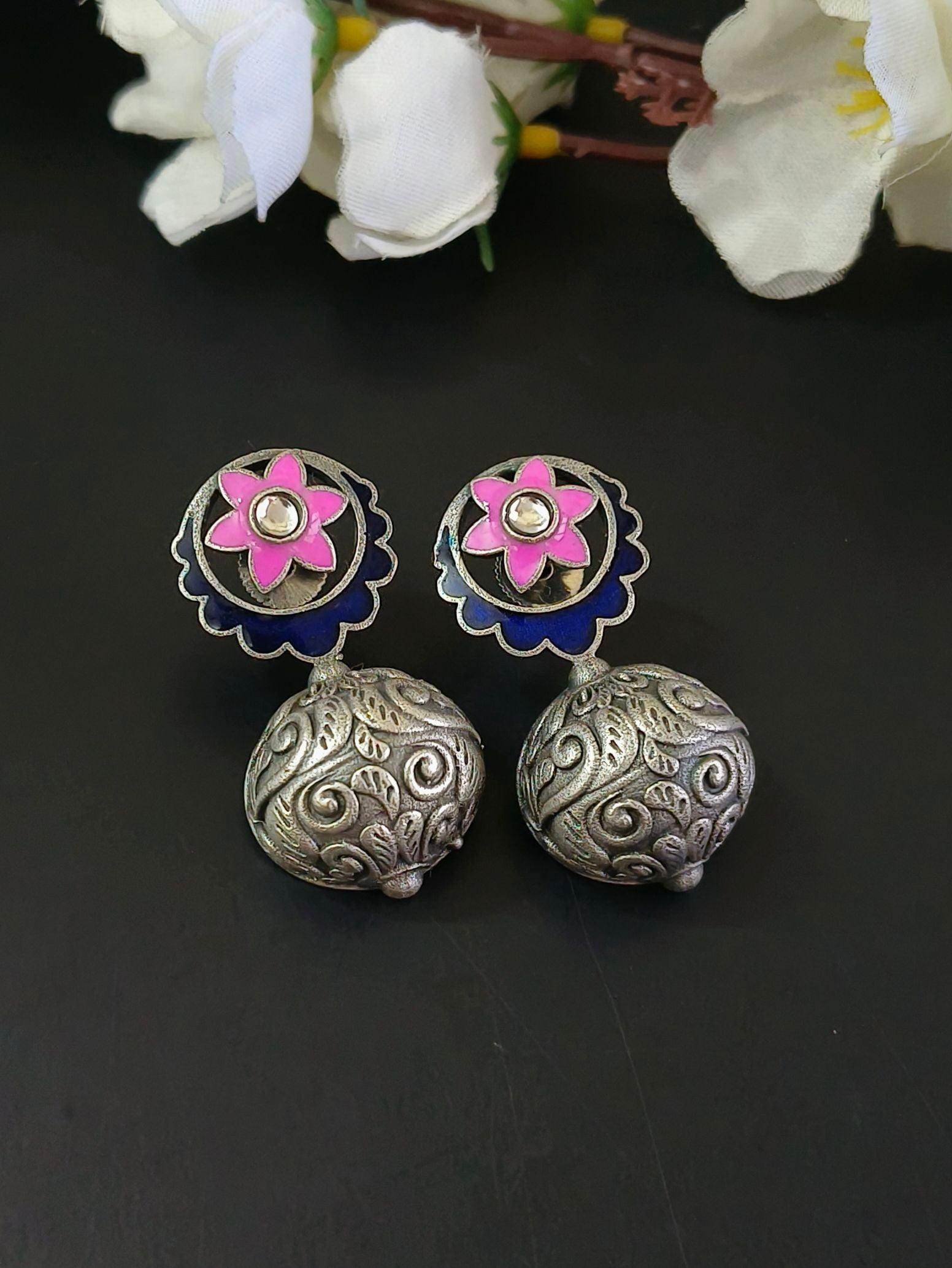 Oxidised Meenakari Hand-Painted Stud Earrings for Elegant Style | Sarichka