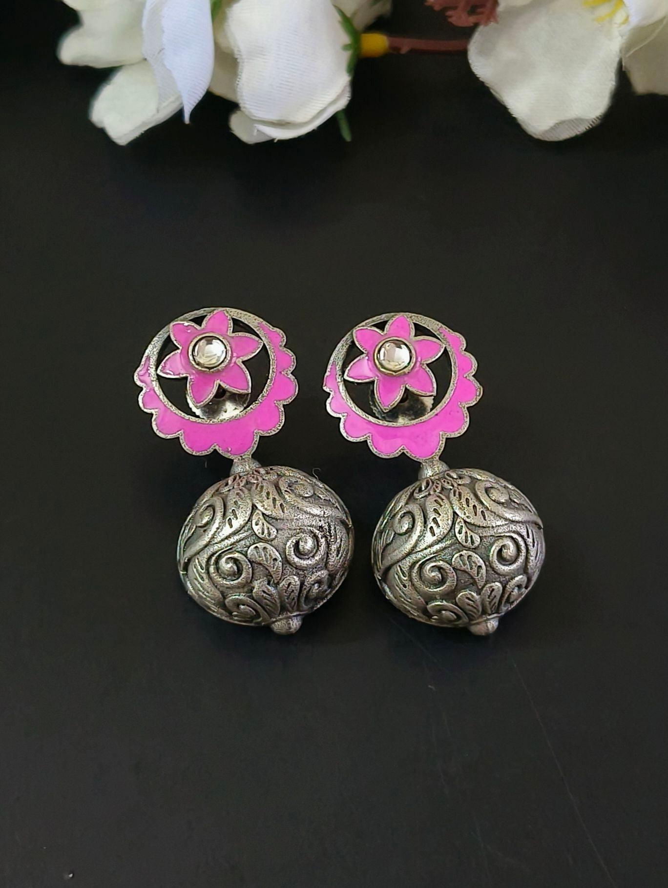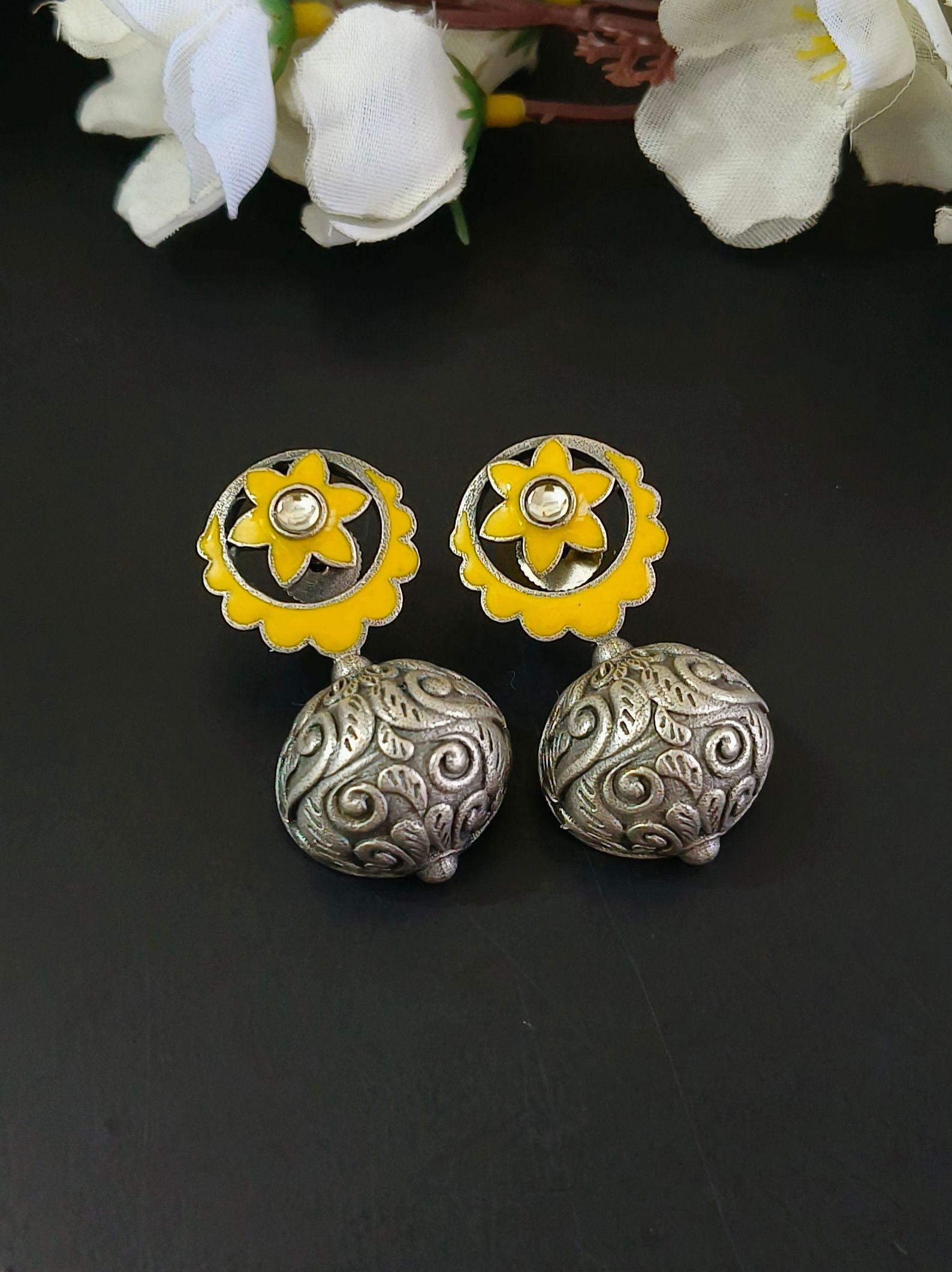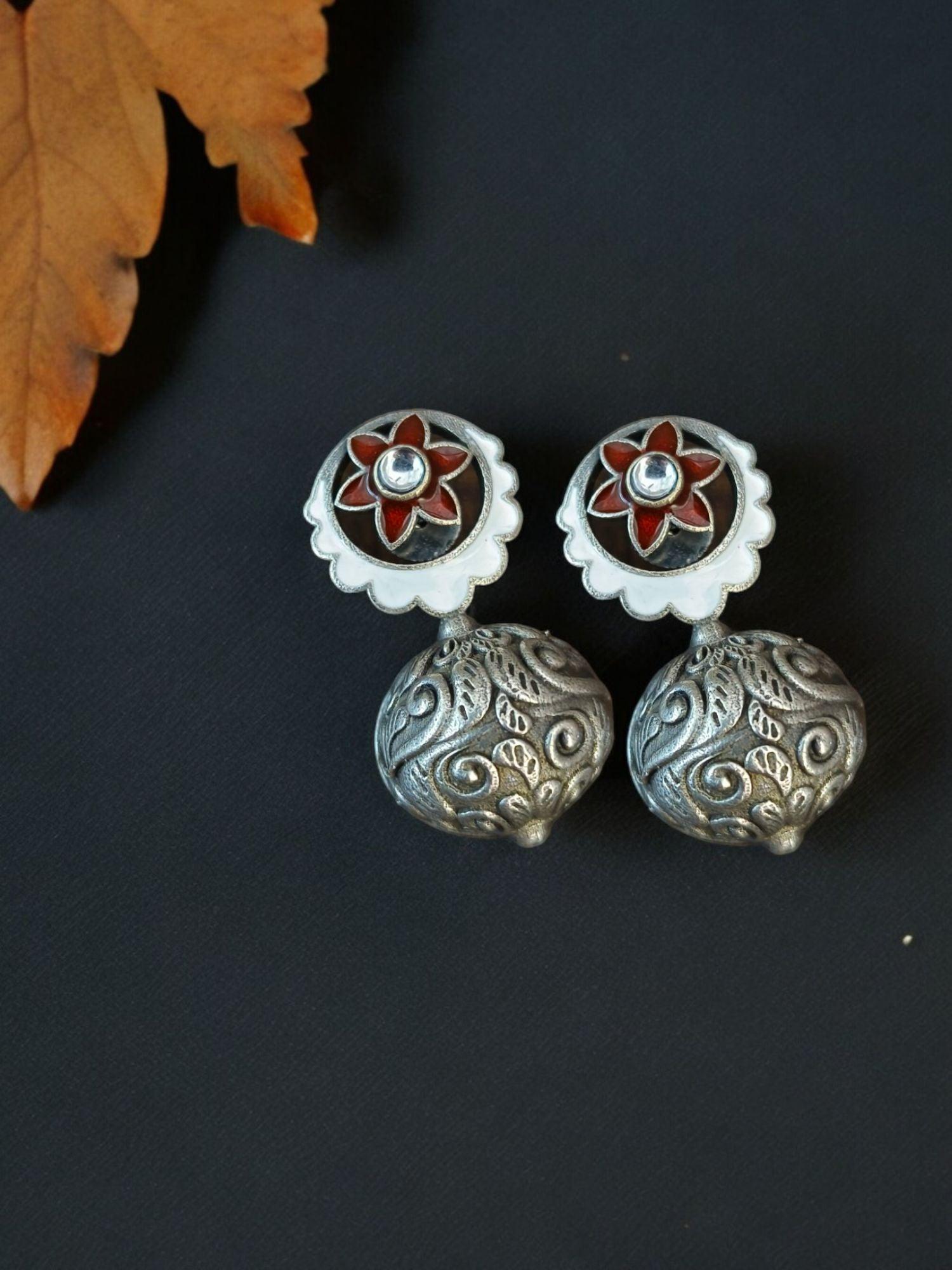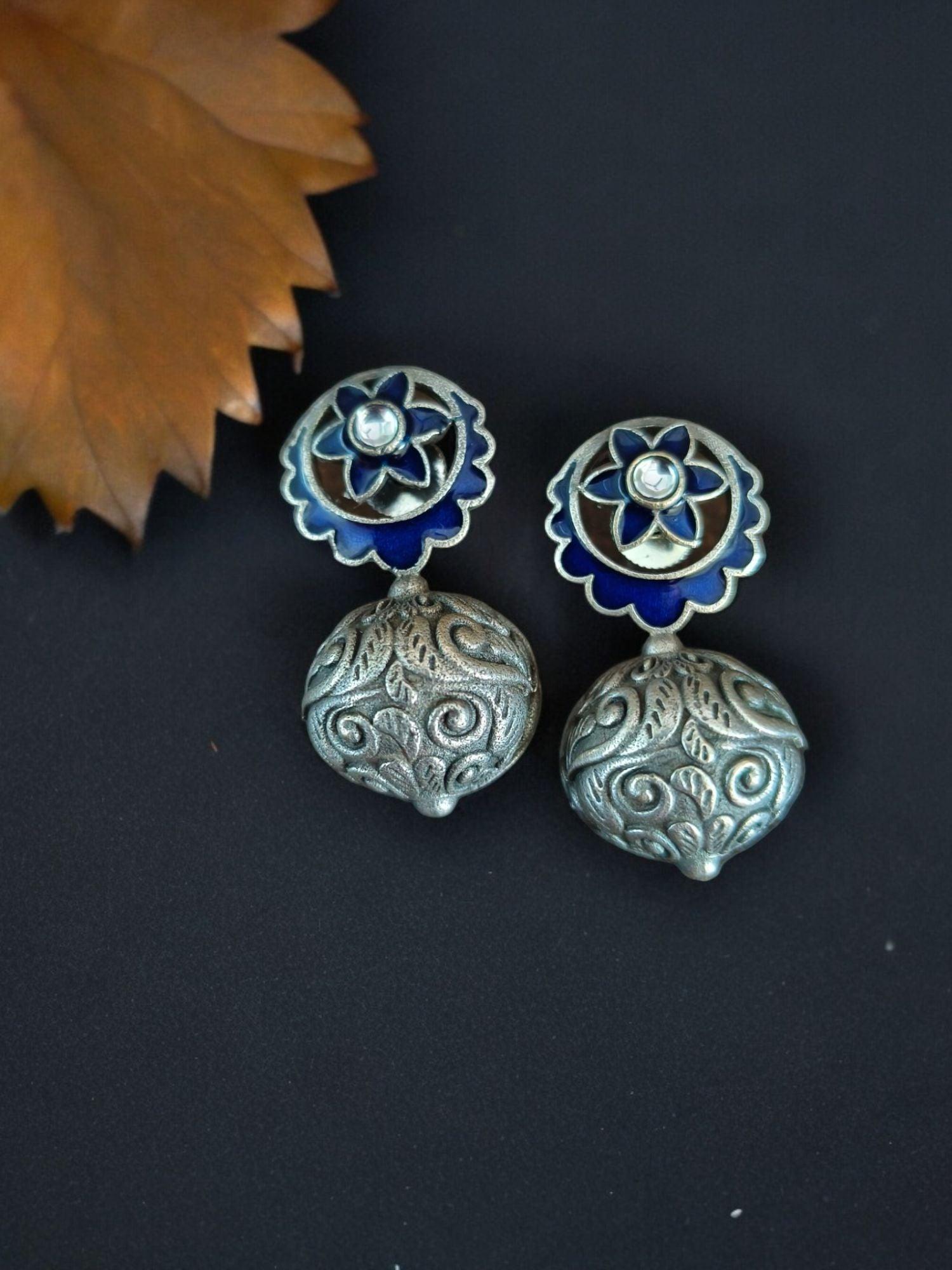Oxidised Meenakari Hand-Painted Stud Earrings for Elegant Style | Sarichka