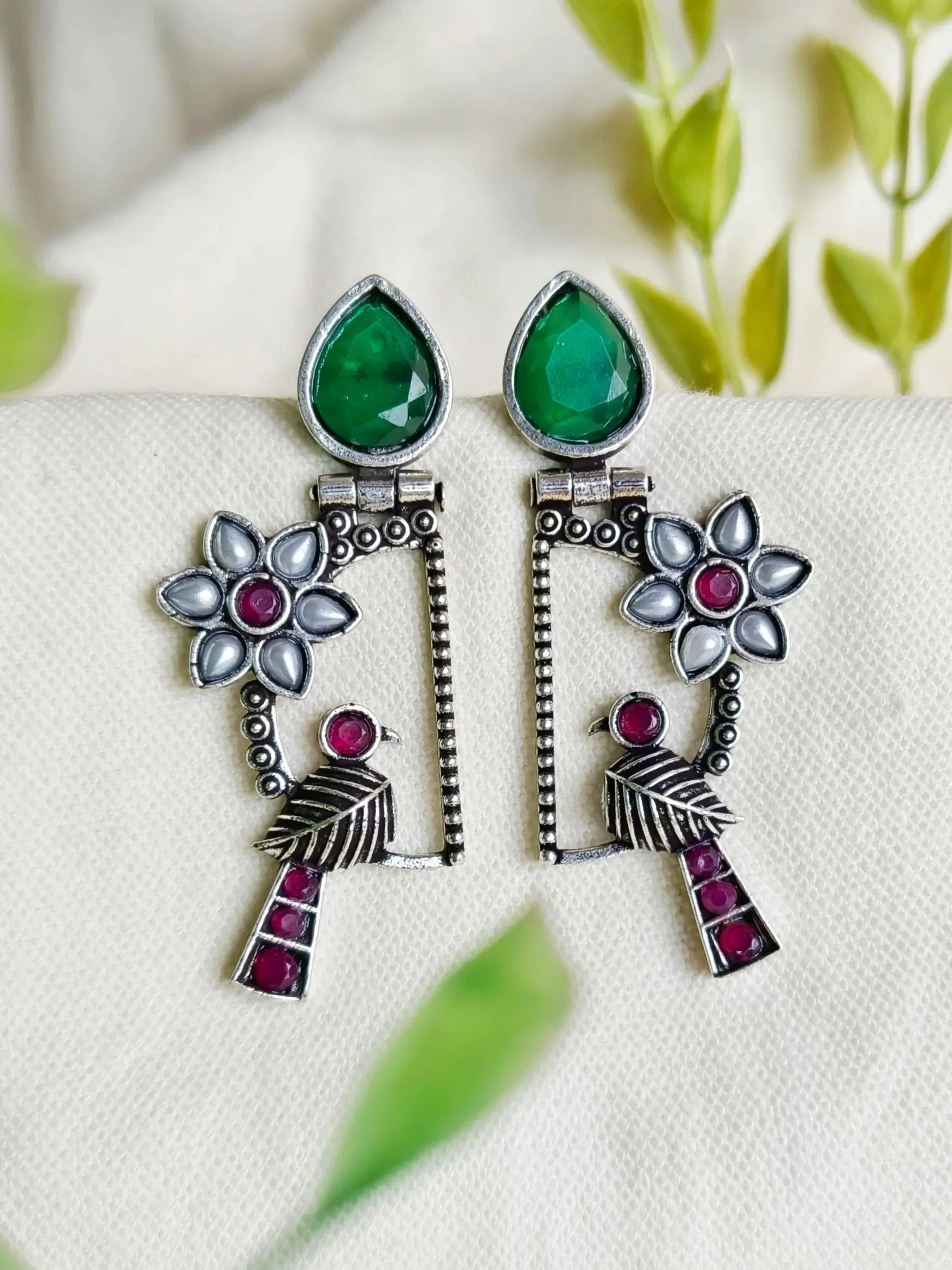 These oxidised bird dangler earrings are perfect for adding a touch of sophistication and nature-inspired beauty to your outfit. Lightweight, versatile, and eye-catching, they are sure to enhance any occasion.