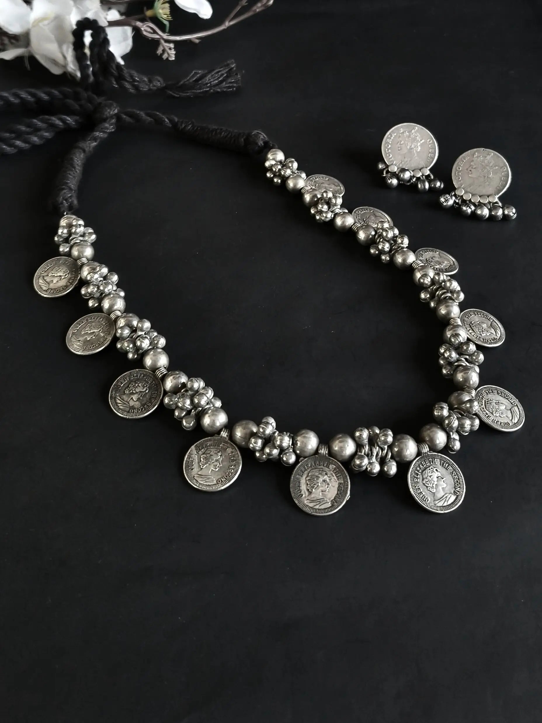 Design Elements: Features classic coin motifs accented with dangling ghungroos that add rhythmic charm and ethnic appeal.