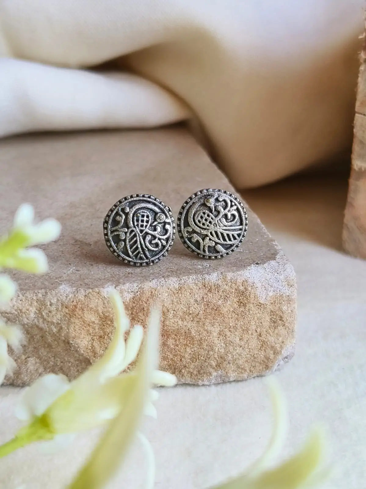 Add a touch of elegance with these oxidized peacock stud earrings, crafted for effortless daily wear. Their intricate design makes them a must-have!