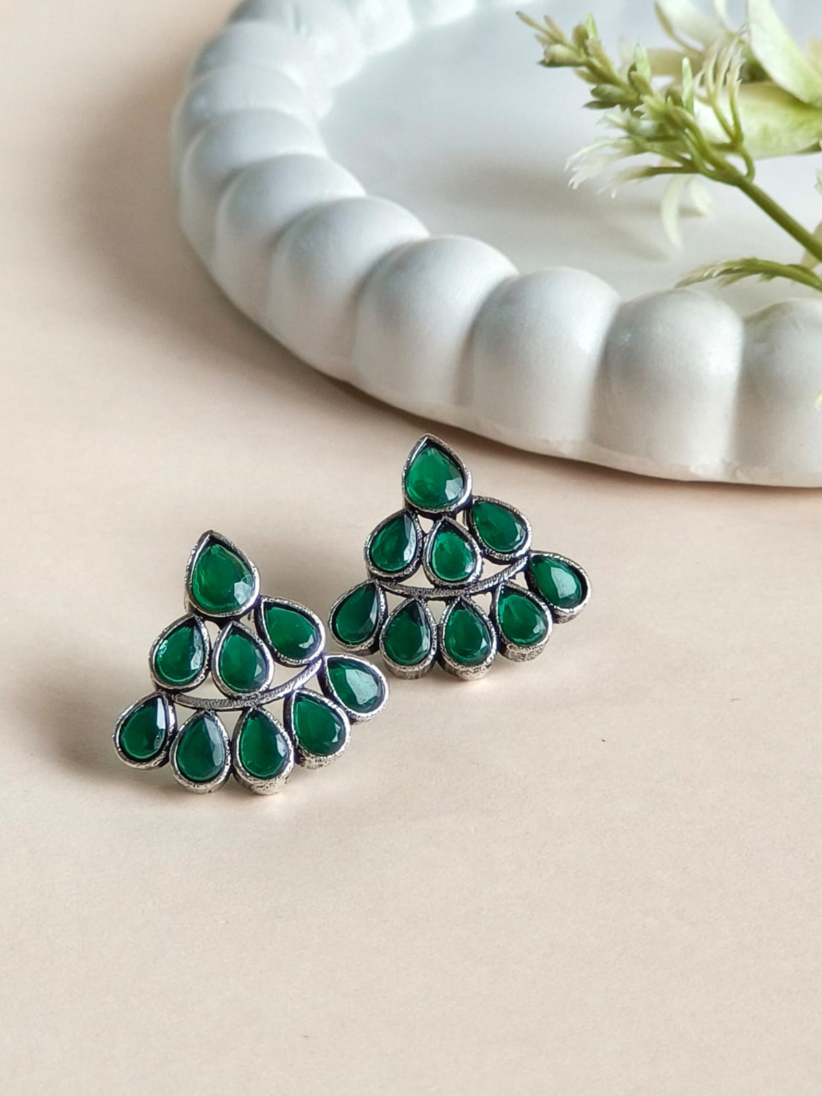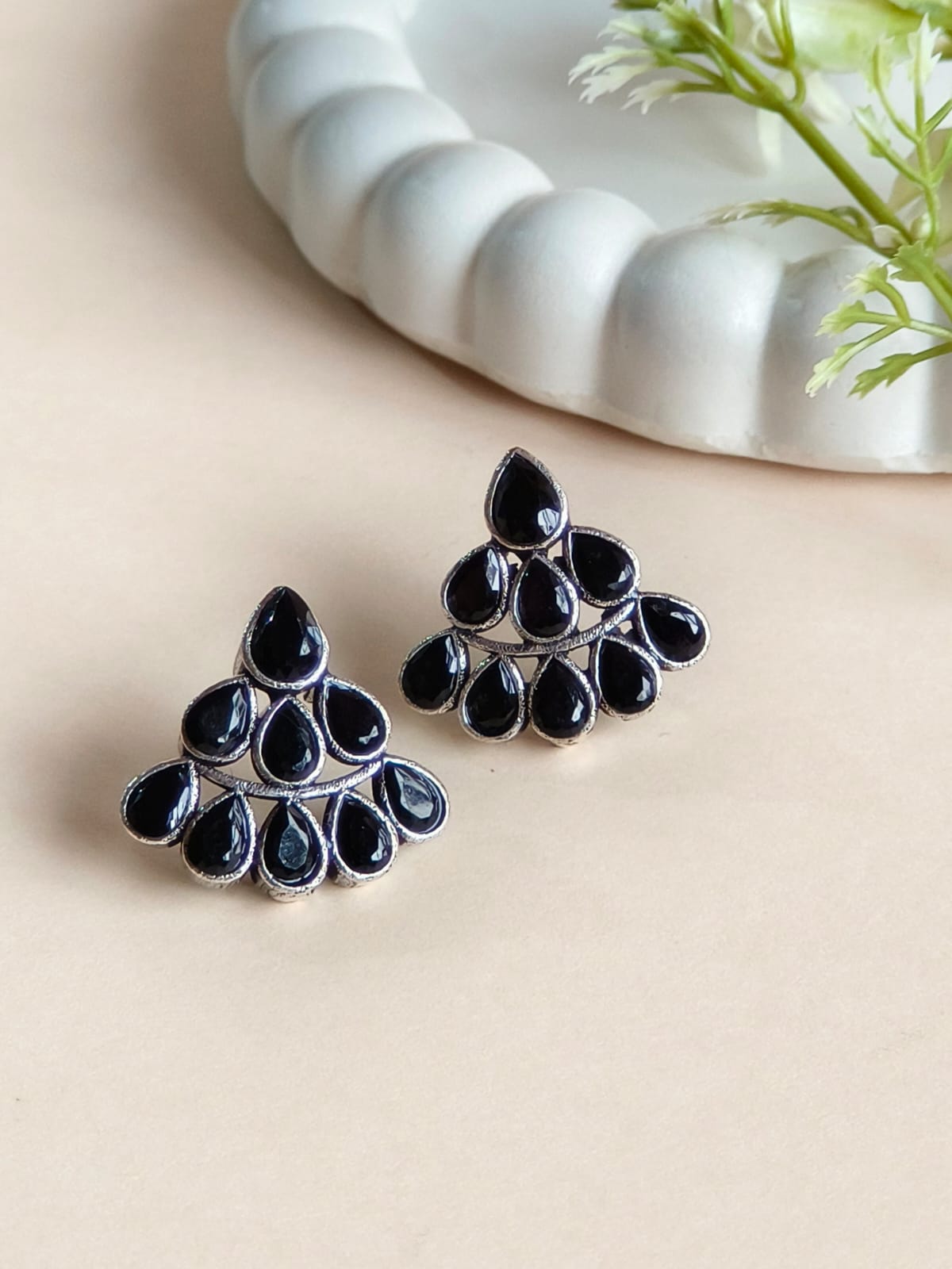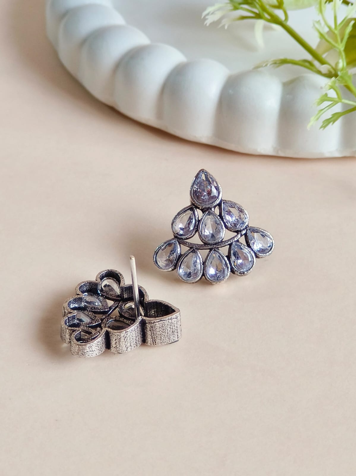Give a hint of sophistication to your outfit with these gorgeous Oxidized Stone Studs. They are made of high-quality brass, and coated with silver of the highest quality These studs offer the perfect mix of modern designs and classic craftmanship. Their oxidized surface creates an old-fashioned look which makes them a great accessory that can be worn for every event.