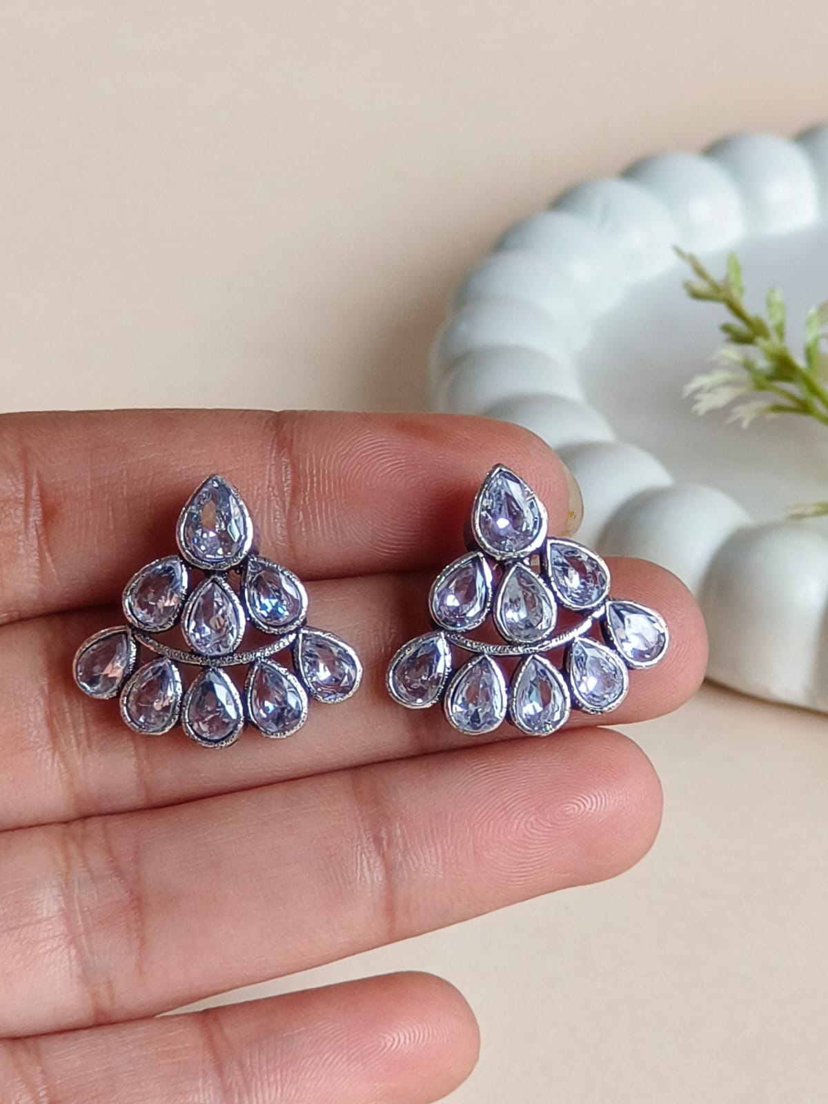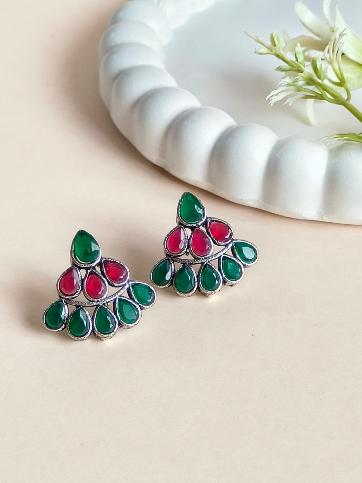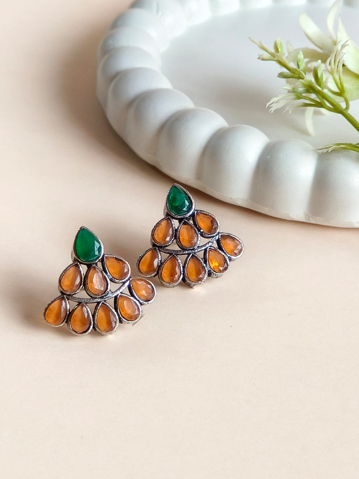 Give a hint of sophistication to your outfit with these gorgeous Oxidized Stone Studs. They are made of high-quality brass, and coated with silver of the highest quality These studs offer the perfect mix of modern designs and classic craftmanship. Their oxidized surface creates an old-fashioned look which makes them a great accessory that can be worn for every event.