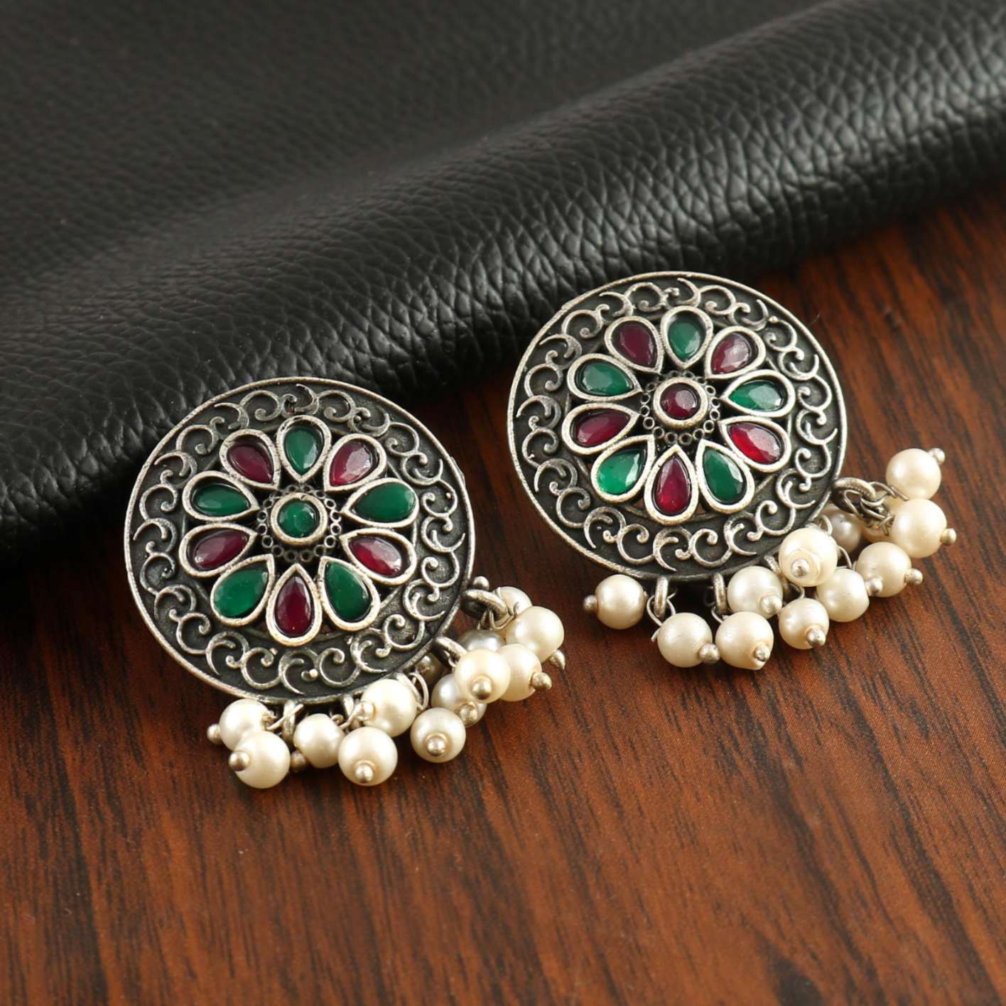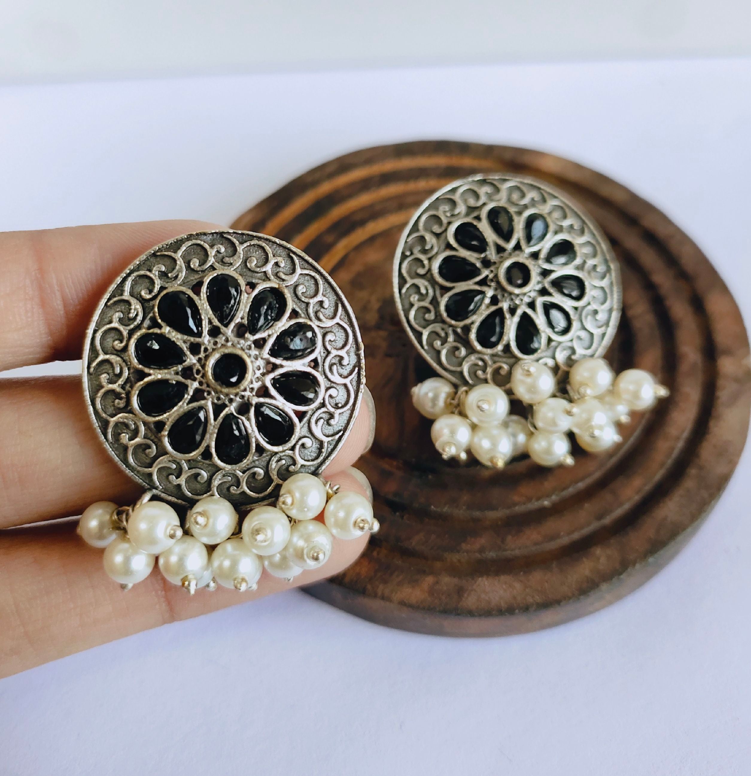 Party Wear oxidised Pearl Earrings | Sarichka