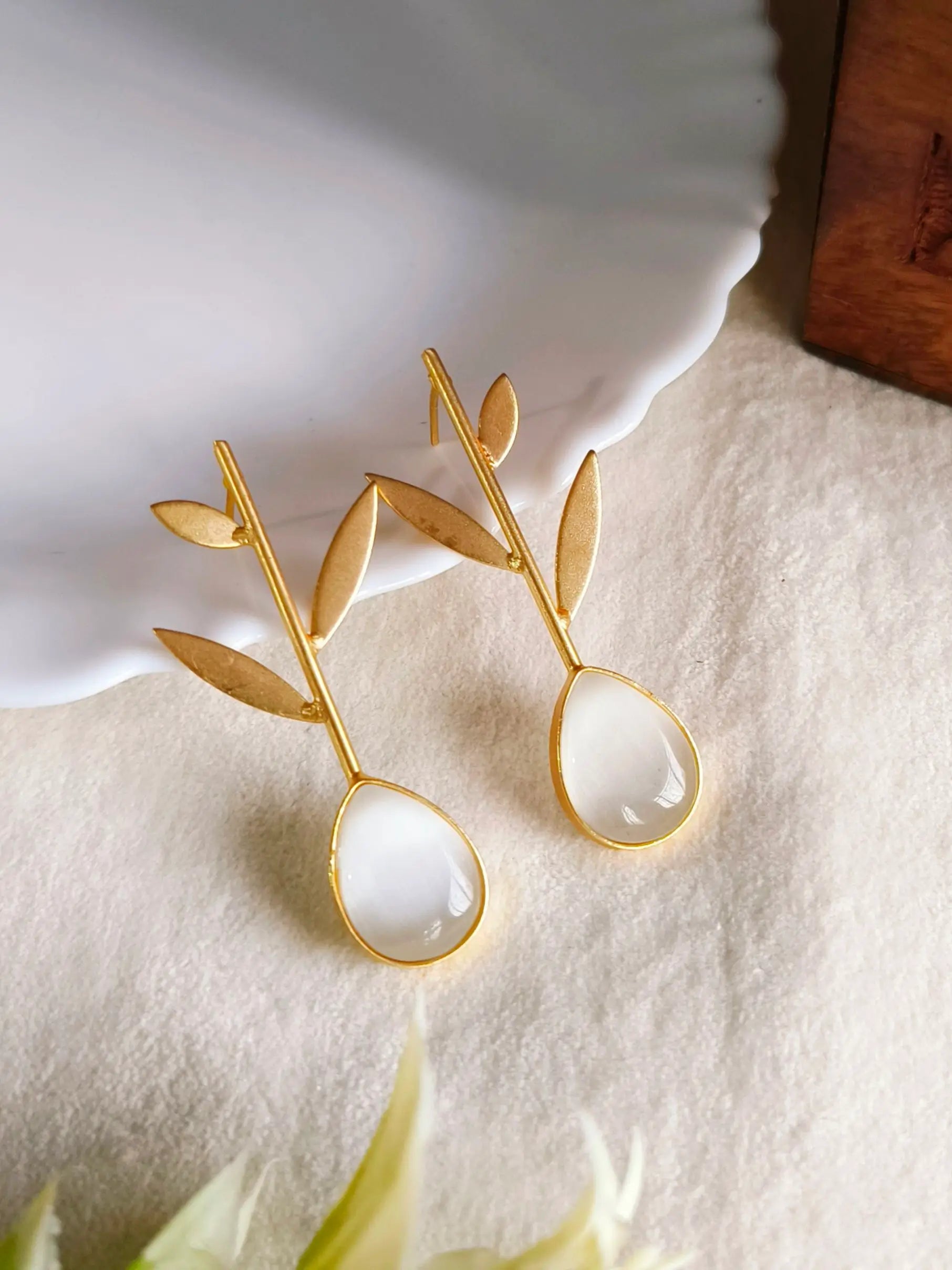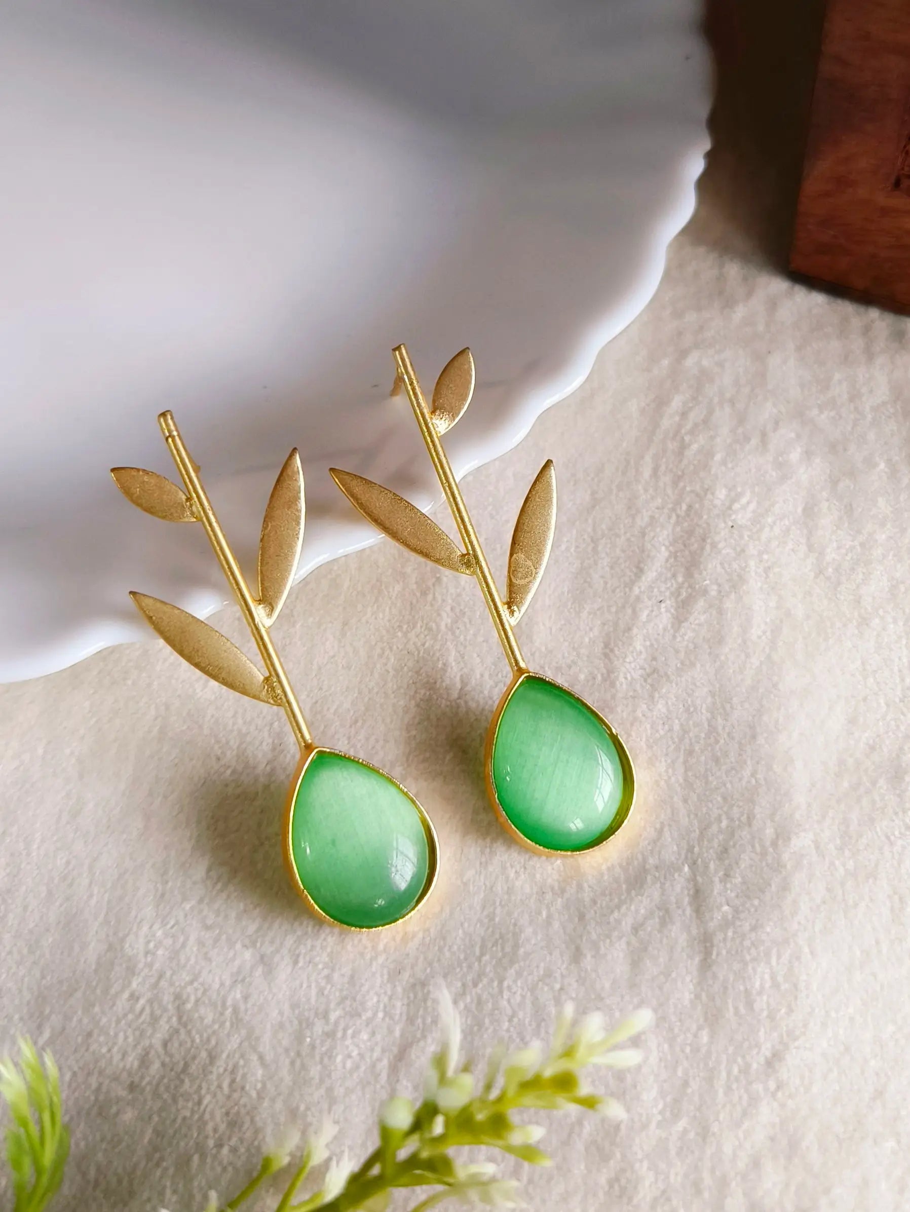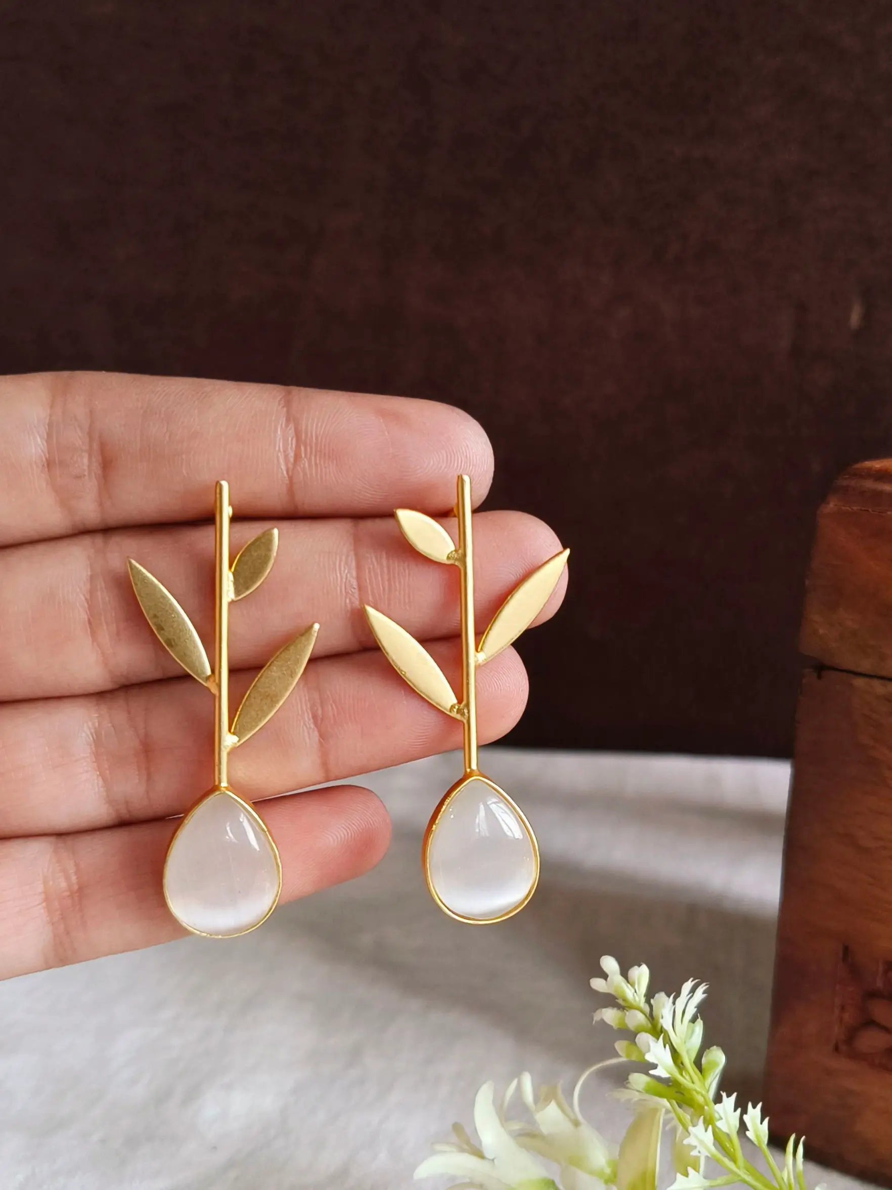 Enhance your look with these gold-plated brass earrings featuring a stunning red teardrop stone paired with a chic golden leaf motif. Their vibrant color and elegant detailing make them perfect for parties, festive events, weddings, and special occasions. The lightweight finish ensures comfortable wear all day, while the bold design complements traditional, western, and fusion outfits beautifully. These earrings also make a thoughtful gift choice for birthdays, anniversaries, and celebrations. Add a touch of effortless glamour and vibrant charm to your collection with this striking accessory.