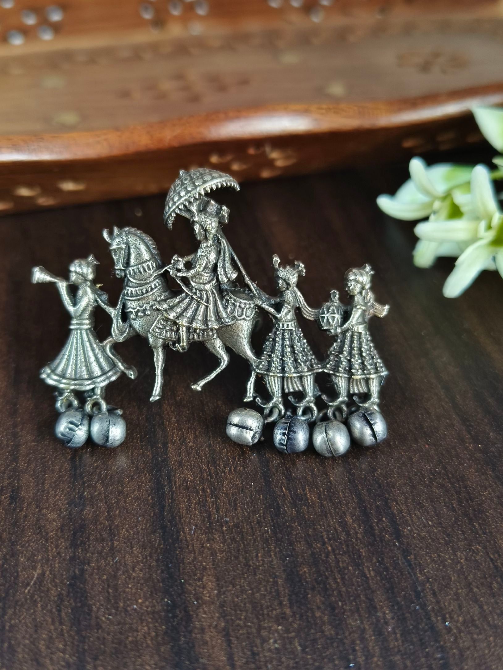This Silver-Look Alike Groom Barat Adjustable Finger Ring combines timeless elegance and modern versatility. Designed with intricate details to resemble a traditional groom's barat ring, it is the perfect accessory for weddings or other special occasions. The adjustable feature ensures a perfect fit, making it comfortable for all-day wear. This ring is a perfect gift for the groom or for someone celebrating a major milestone. Whether you're dressing up for a wedding or festive celebration, this ring adds sophistication and charm to any traditional or fusion outfit.