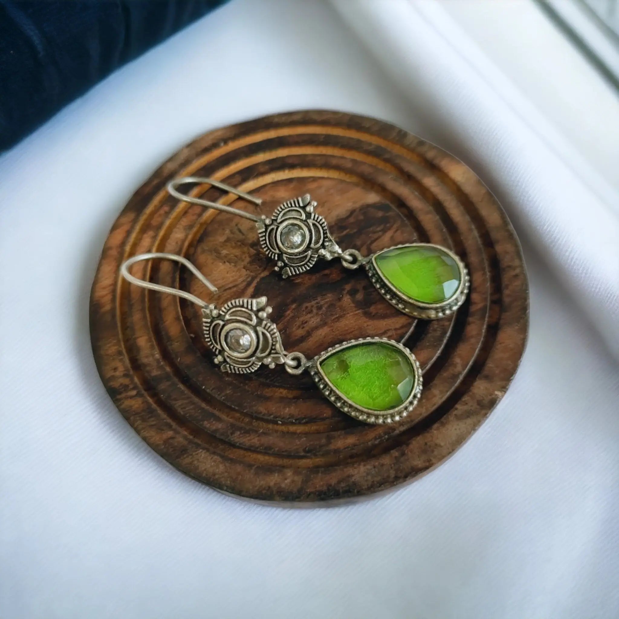 Add timeless elegance to your collection with these silver replica teardrop gemstone hook earrings, designed with a smooth silver-polish finish. The striking teardrop gemstone adds a pop of color and sophistication, making this pair perfect for daily wear, office outfits, casual outings, and light festive occasions. Lightweight and comfortable, they also make a thoughtful gift for birthdays, celebrations, or special moments. Pair these earrings with western, fusion, or Indo-western outfits for a refined and versatile look that suits any occasion.