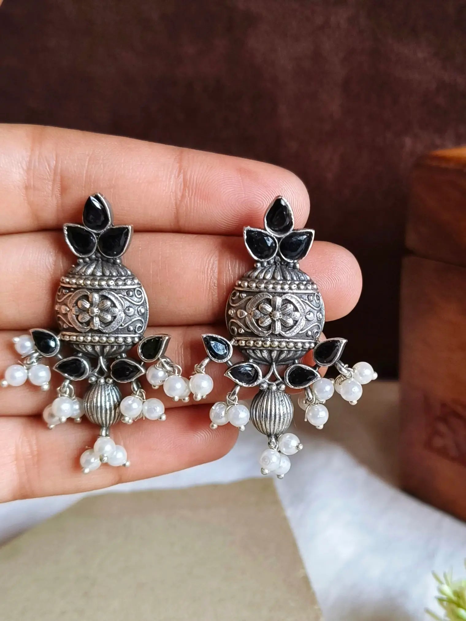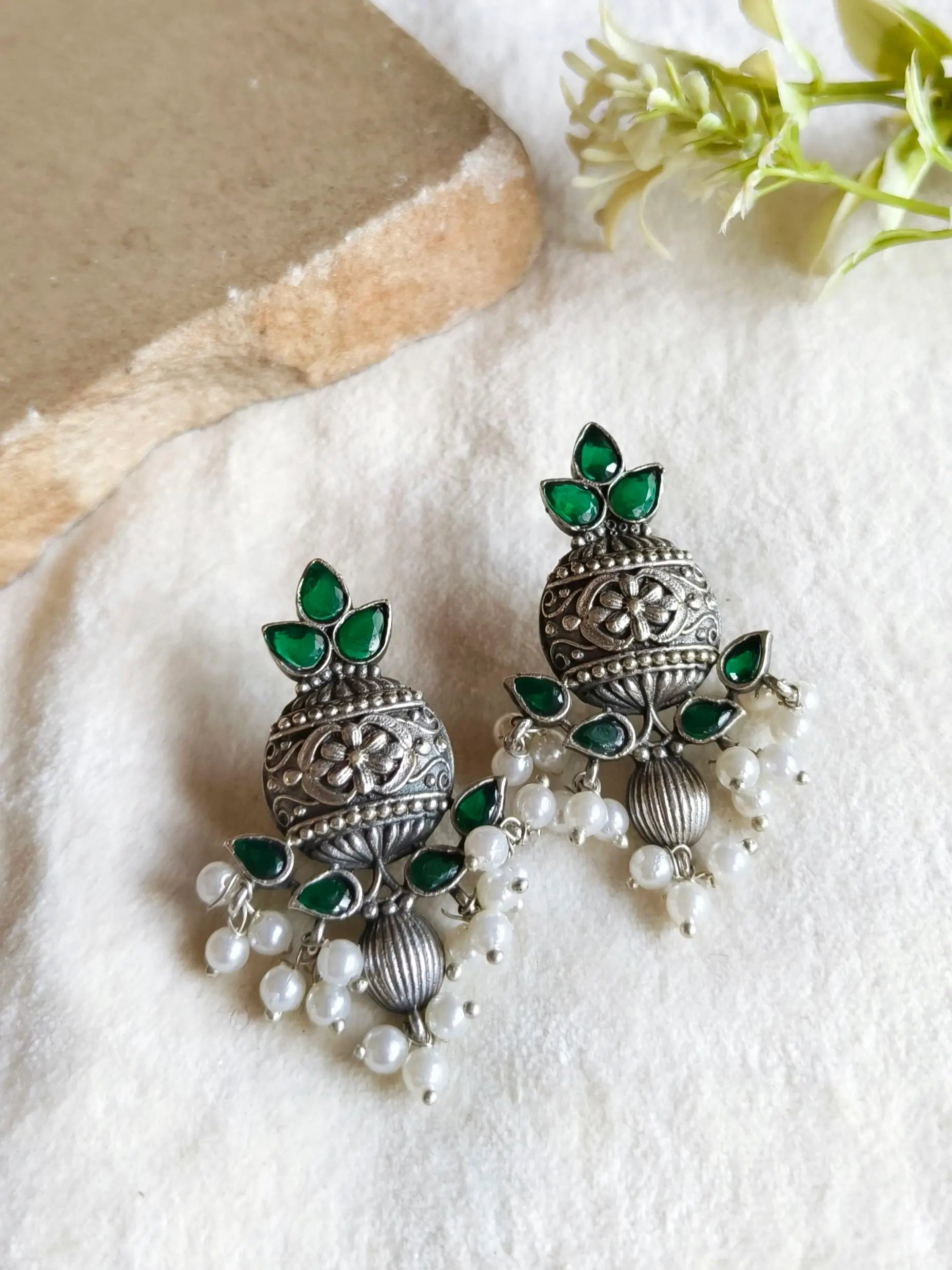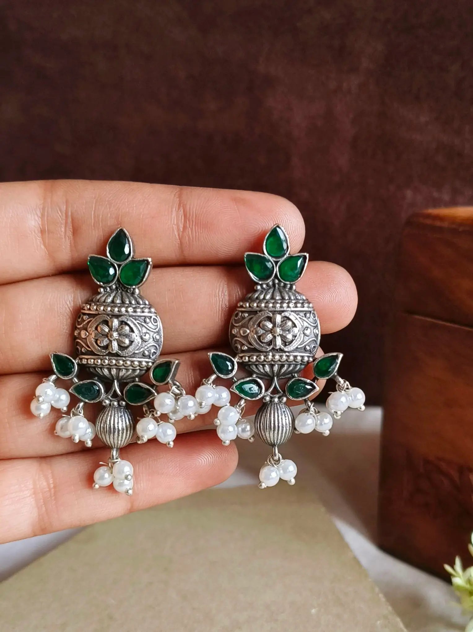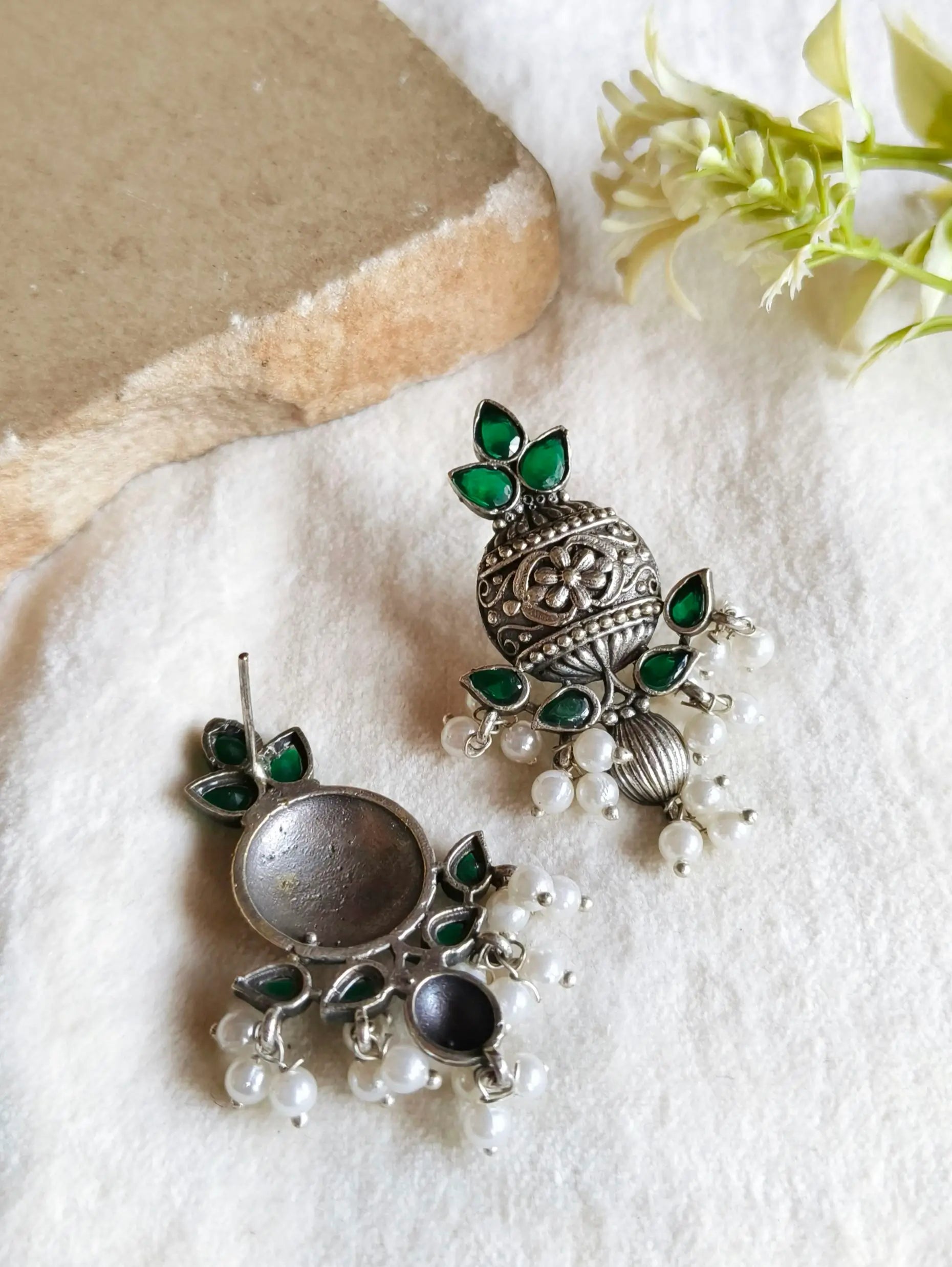 Add a touch of traditional charm to your look with these Silver Replica Kalash Kundan Stud Earrings. Crafted with a refined silver polish and embellished with dazzling kundan stones, these earrings exude timeless elegance. The kalash motif adds cultural significance, making them perfect for festive celebrations, weddings, or traditional gatherings.