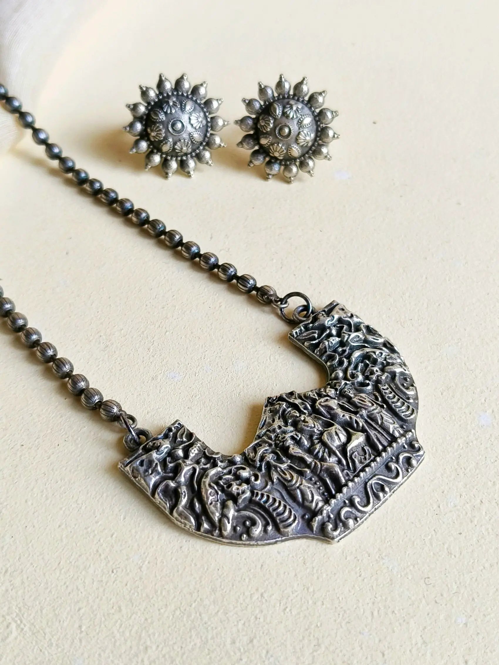Spiritual Silver Look-Alike Pendant Set for Navratri Festive Style | Sarichka