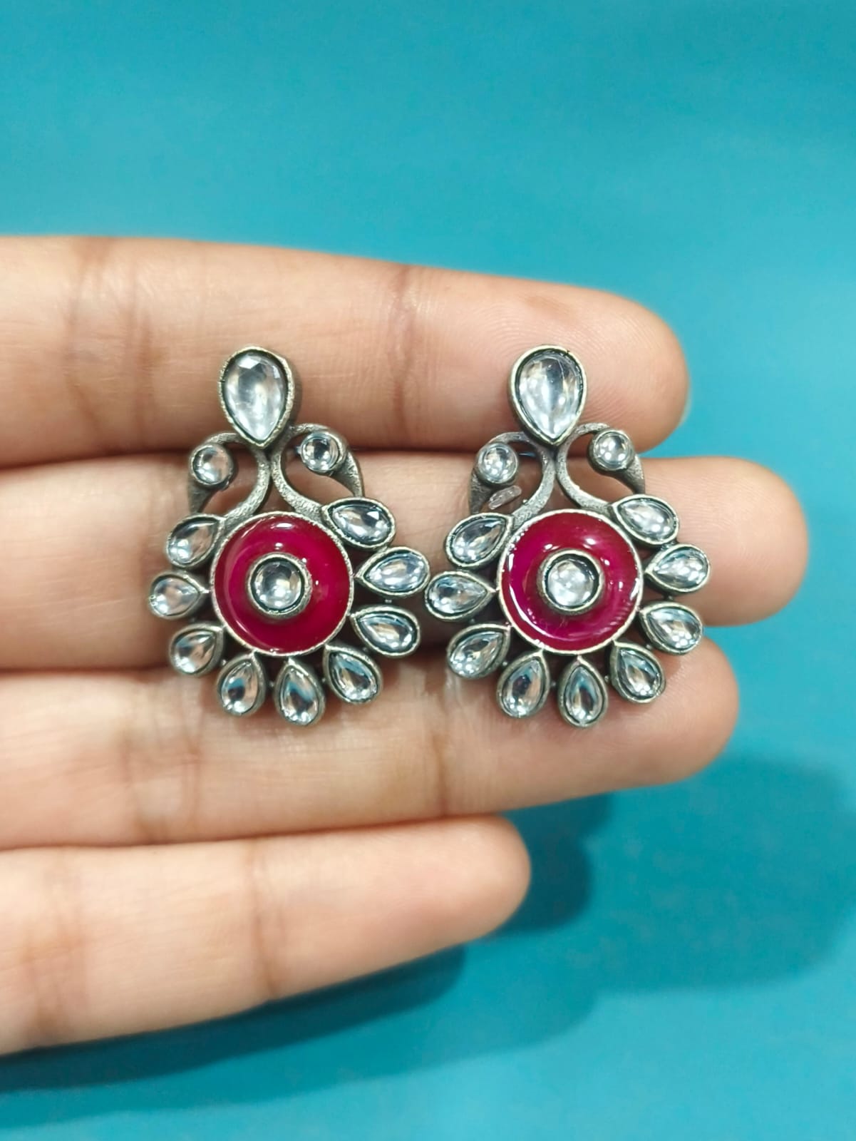 We are presenting our gorgeous Stone Oxidised Studs which are a wonderful mix of class and style. These beautiful earrings were made using premium brass and then coated with silver, which makes them an essential accessory for any jewelry lover. The Animal-like details add a perfect touch of class as the oxidized sterling silver finish provides these earrings with an elegant, timeless look.