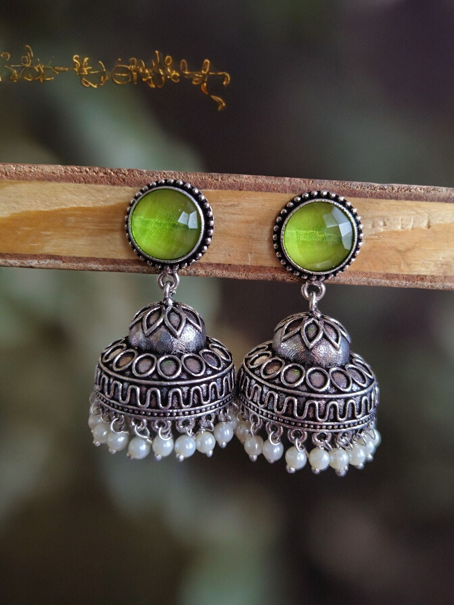 Wear the timeless appeal that is the Trendy Oxidised Jhumka. They are expertly made of high-quality brass, and finished with a premium 925 silver plating. The earrings are a symbol of elegance and strength.